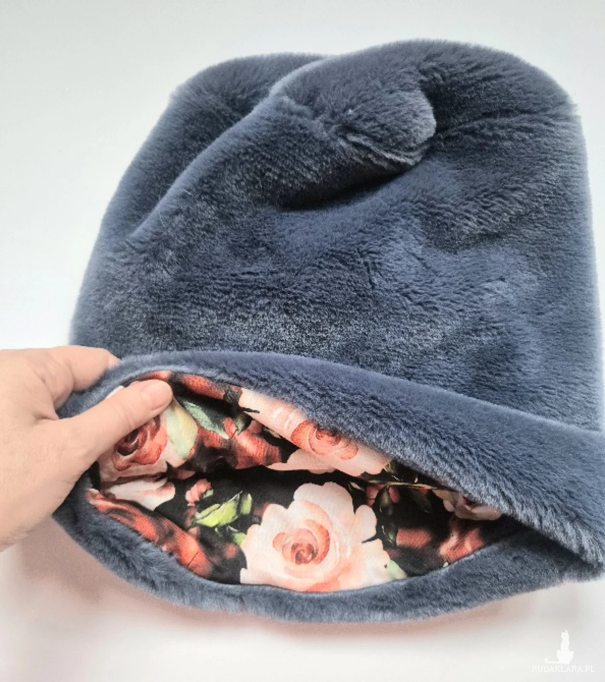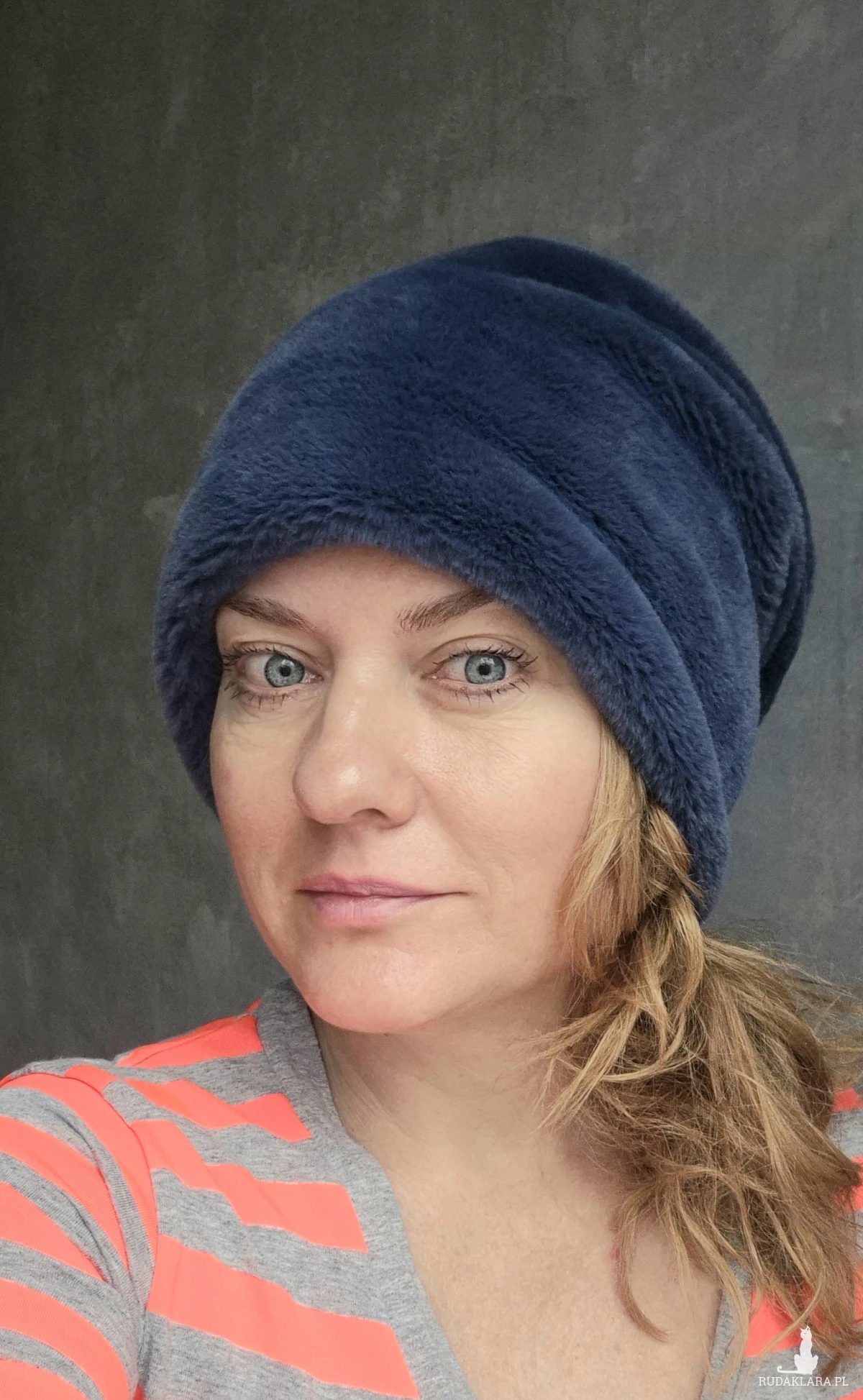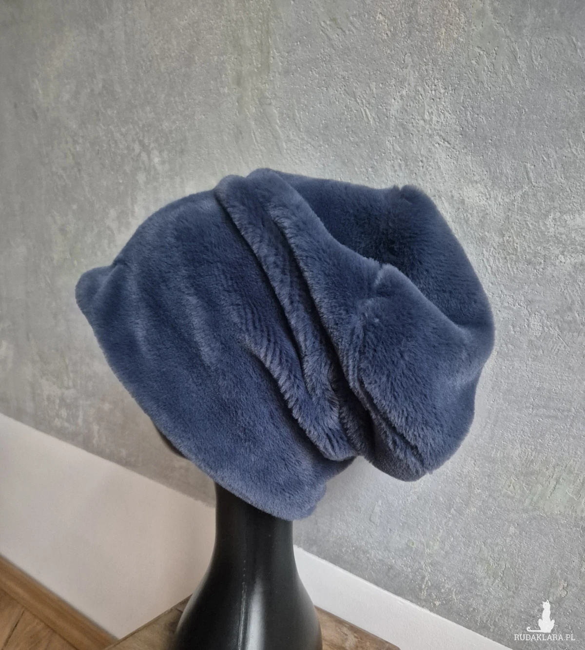 Czapka futrzana niebieska ociepła na podszewce, prezentuje się niezwykle oryginalnie nie dla szarej myszki dla odważnych pewnych siebie kobitek polecam pojedyncza sztuka box waliz