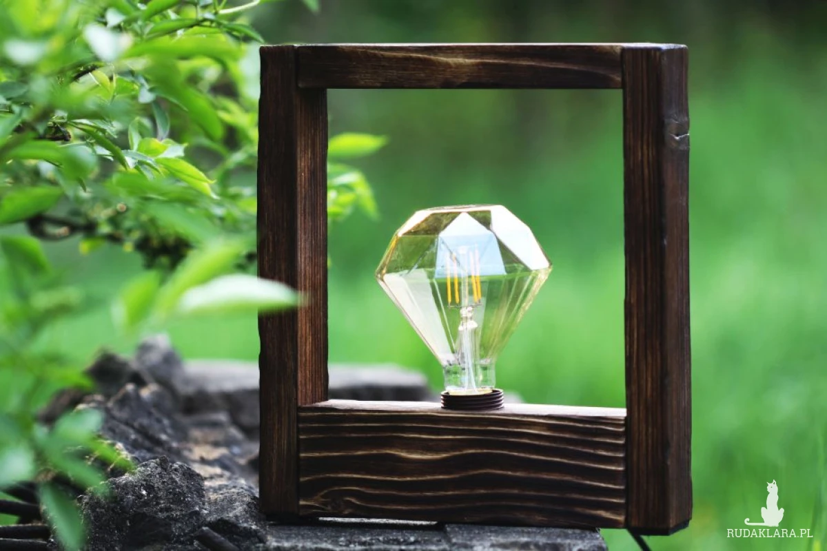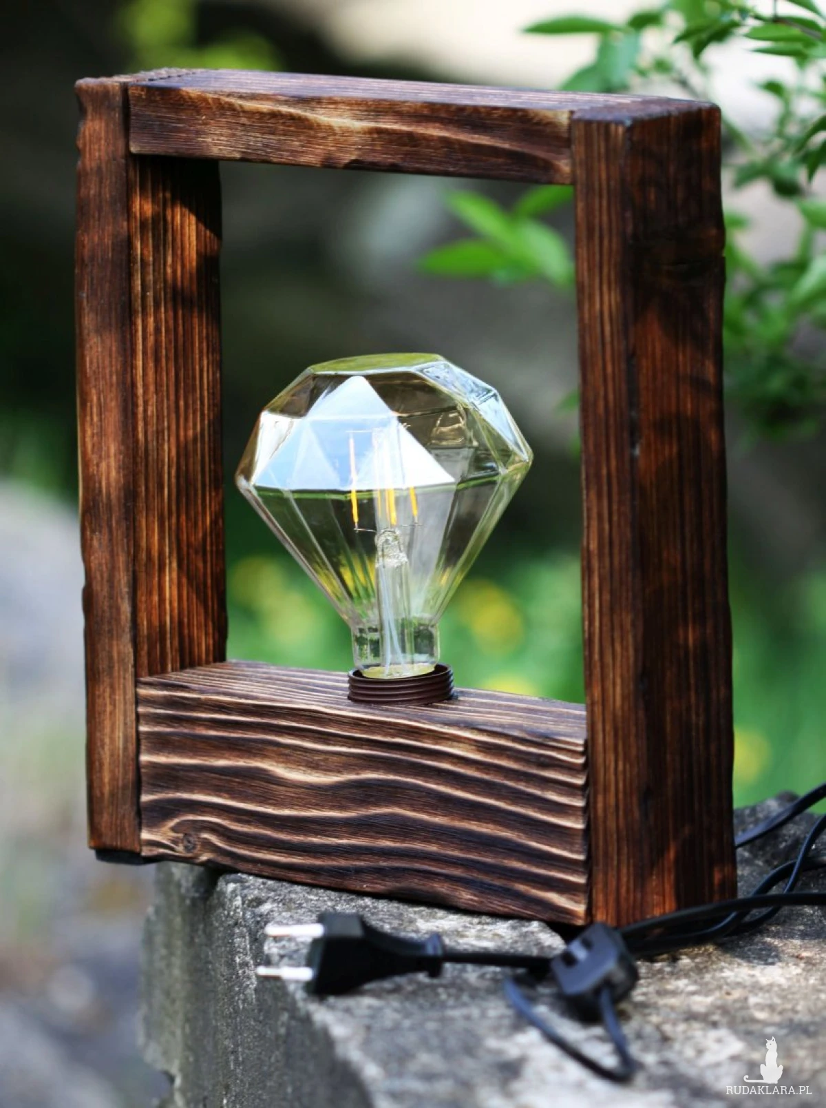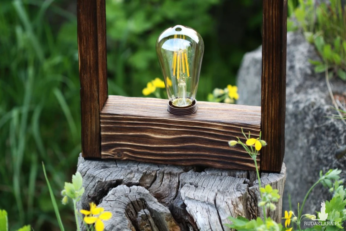 Jedyna w swoim rodzaju lampka stołowa, wykonana ręcznie z opalanego drewna świerkowego. Egzemplarz pojedynczy według autorskiego pomysłu!