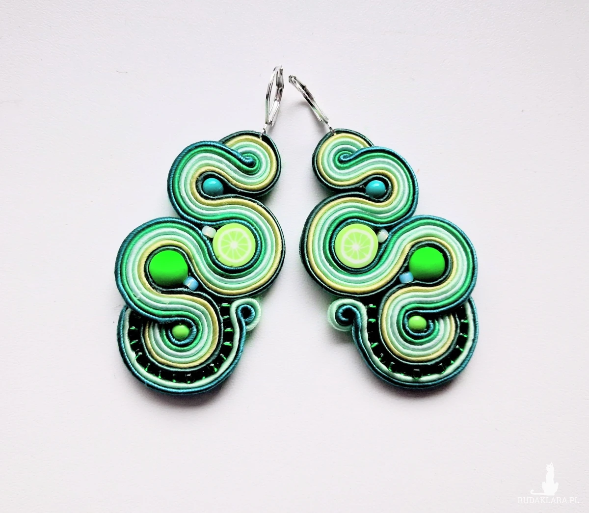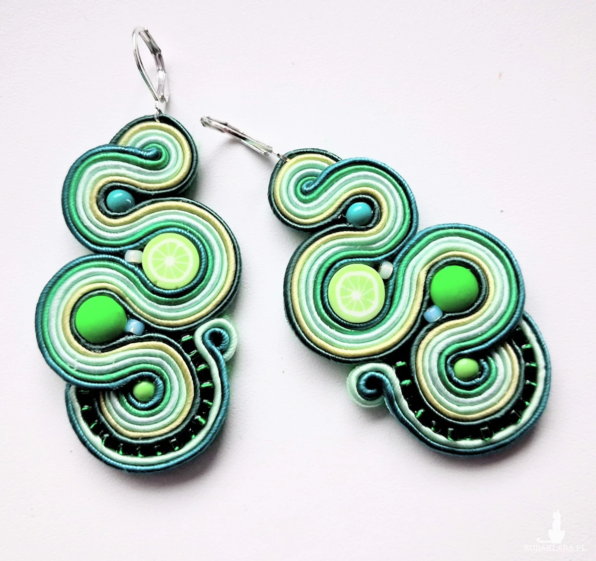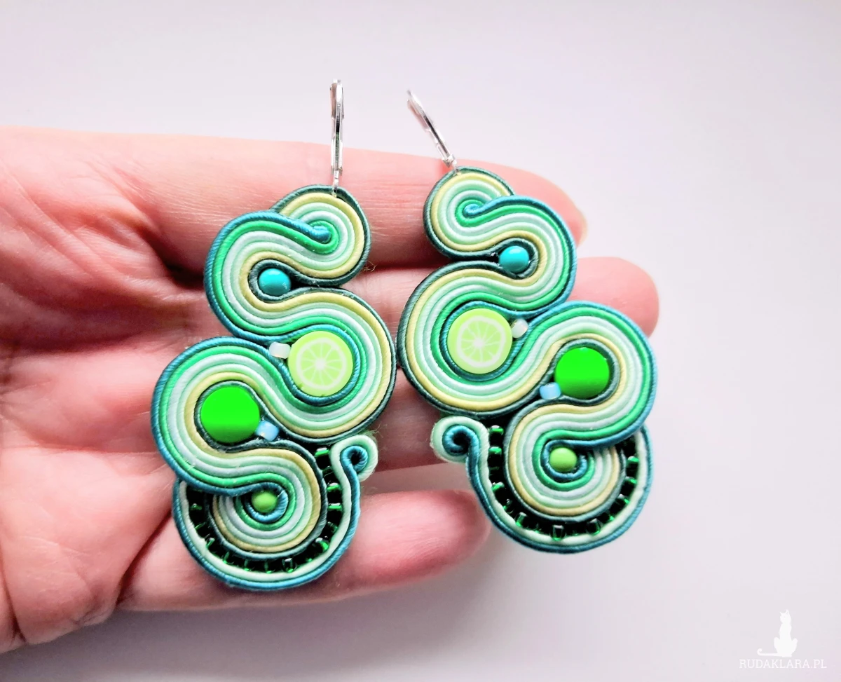 Kolczyki sutaszowe ręcznie haftowane.