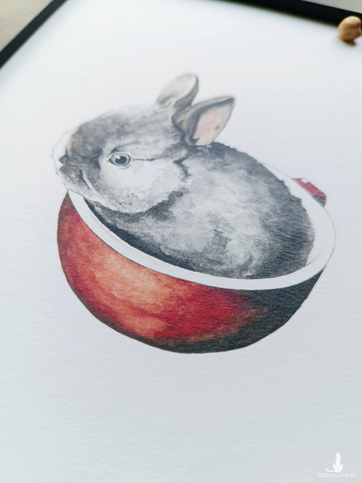 Ten słodki maluch czeka na nowy dom. Łóżeczko ma w filiżance.