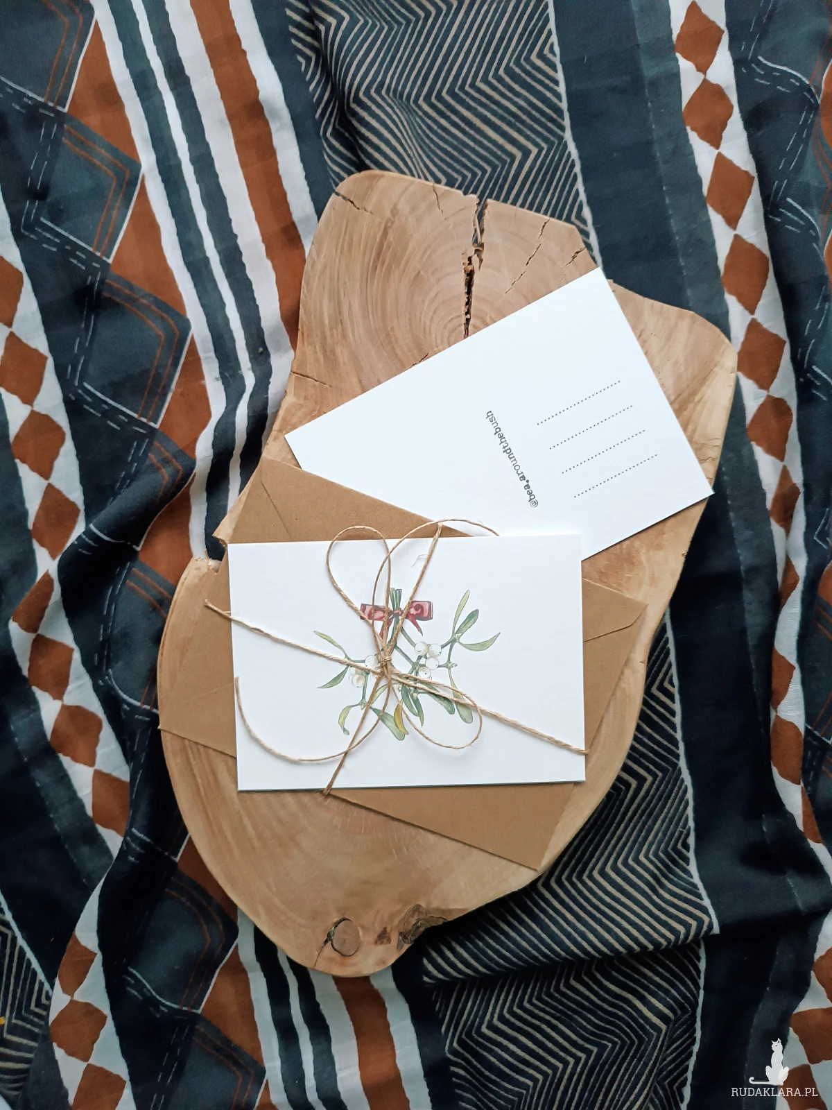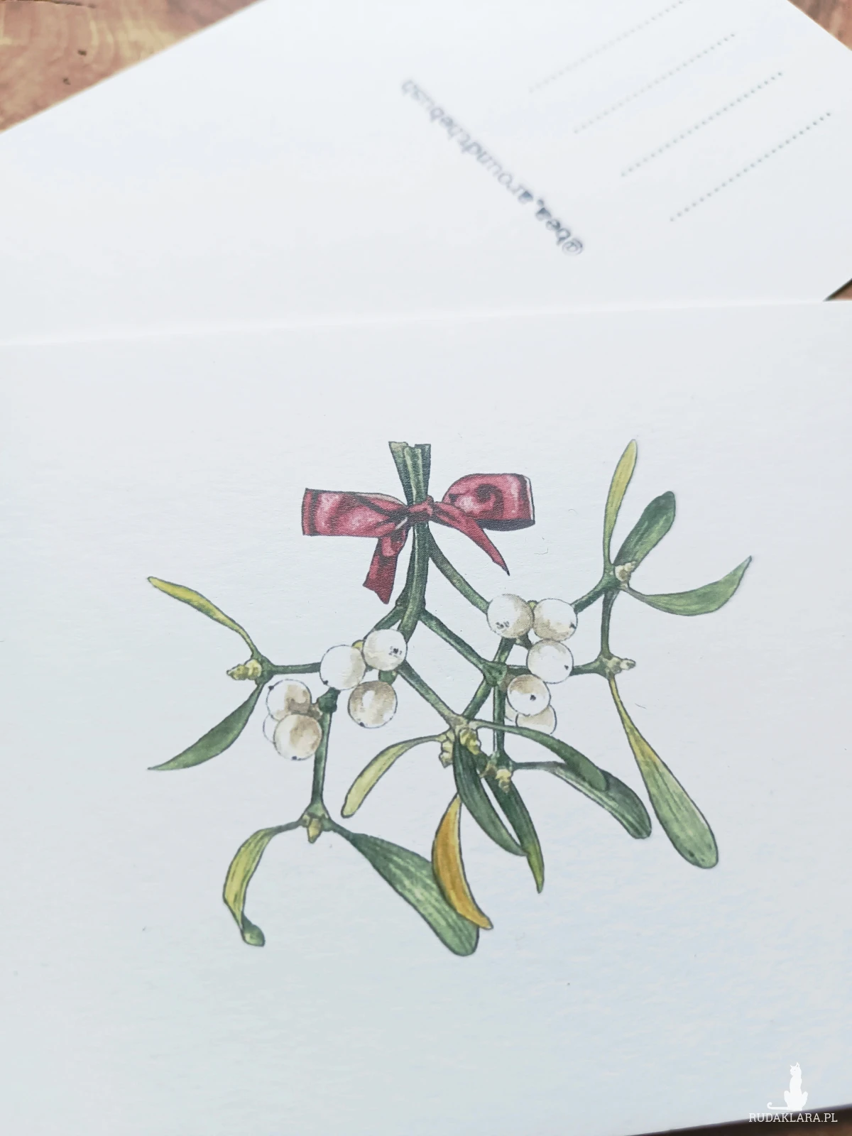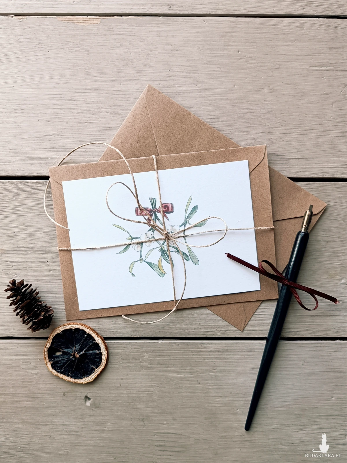 Pocztówka z jemiołą to super pomysł na uzupełnienie prezentu lub na prezent sam w sobie, bo oprawiona stanie się obrazkiem!