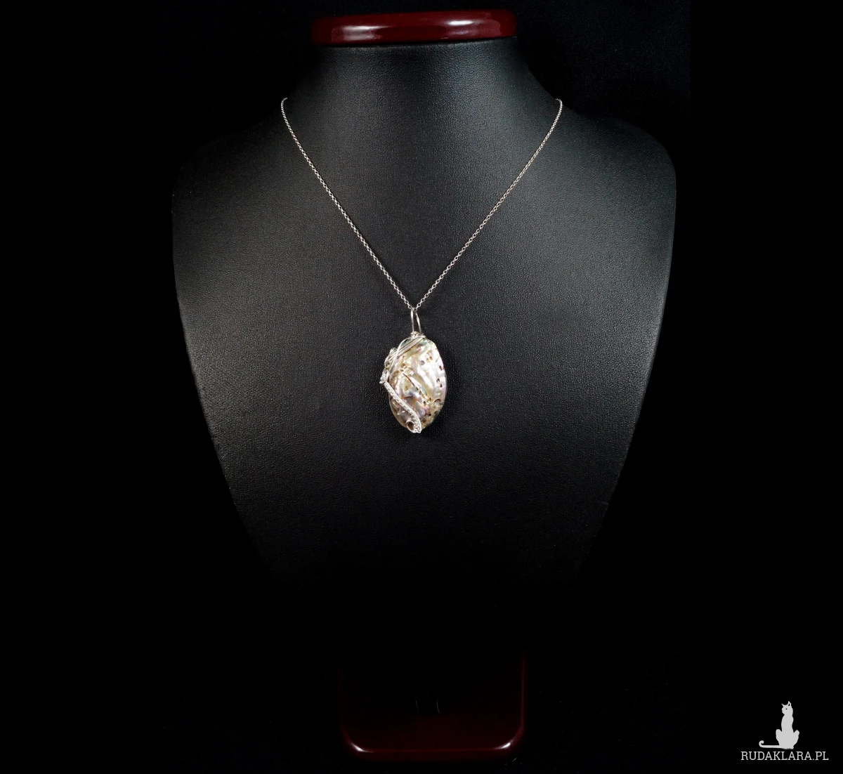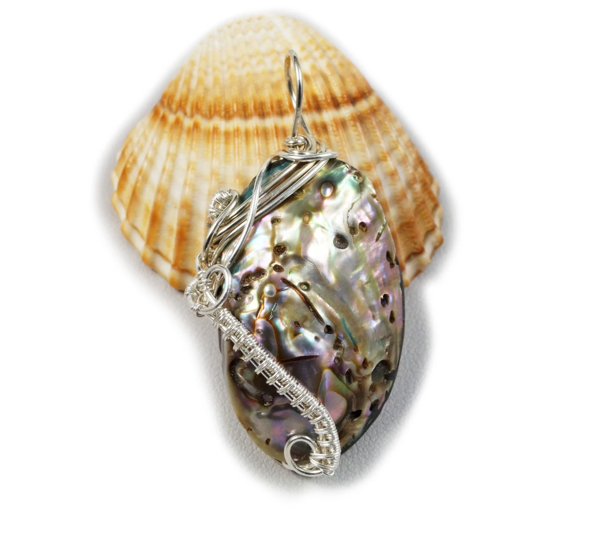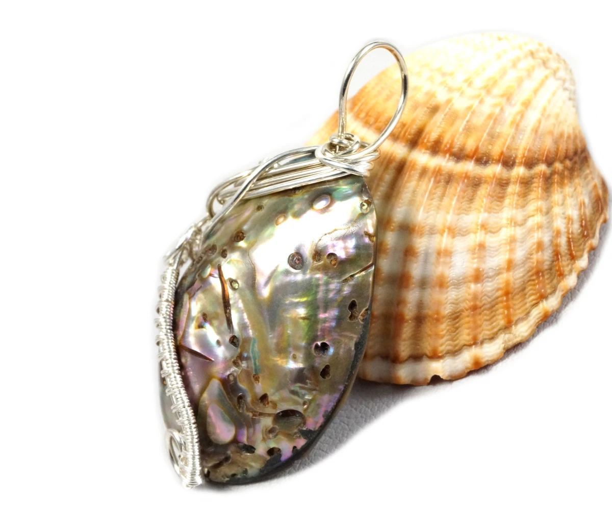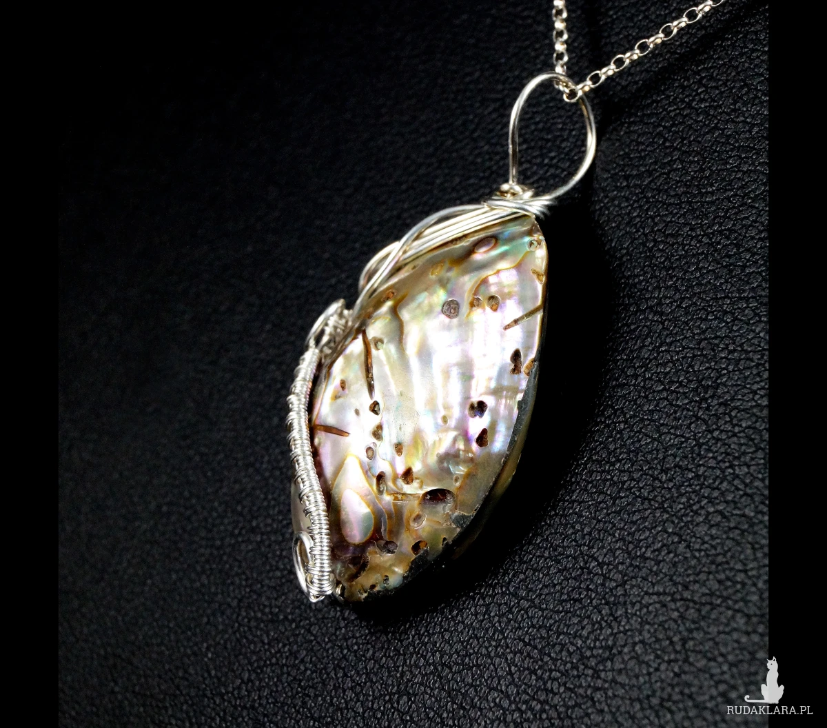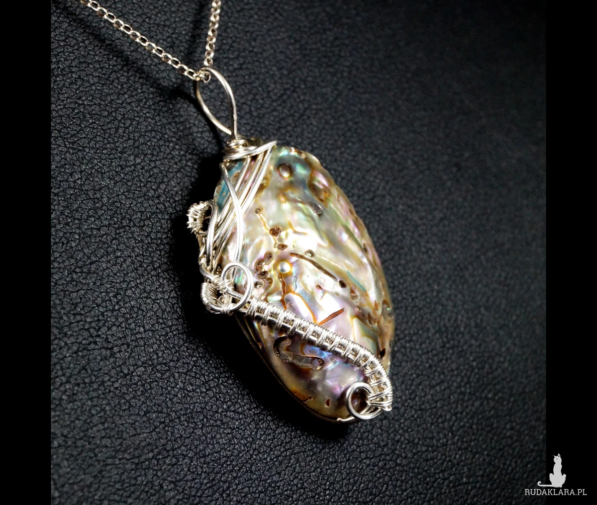 Muszla abalone, Srebrny wisior z muszlą abalone wire wrapped, prezent dla niej, prezent dla mamy, ręcznie robiona biżuteria autorska