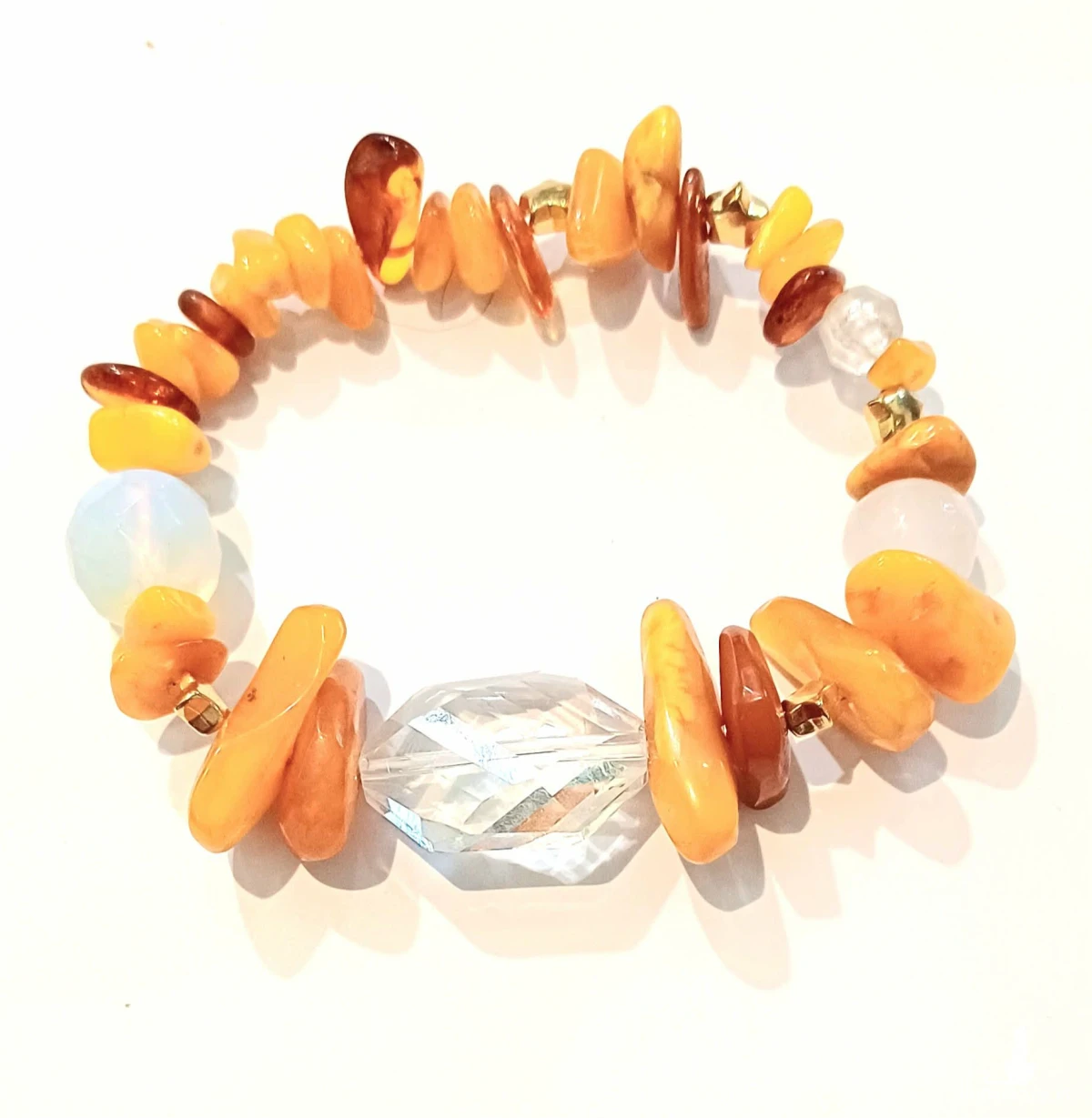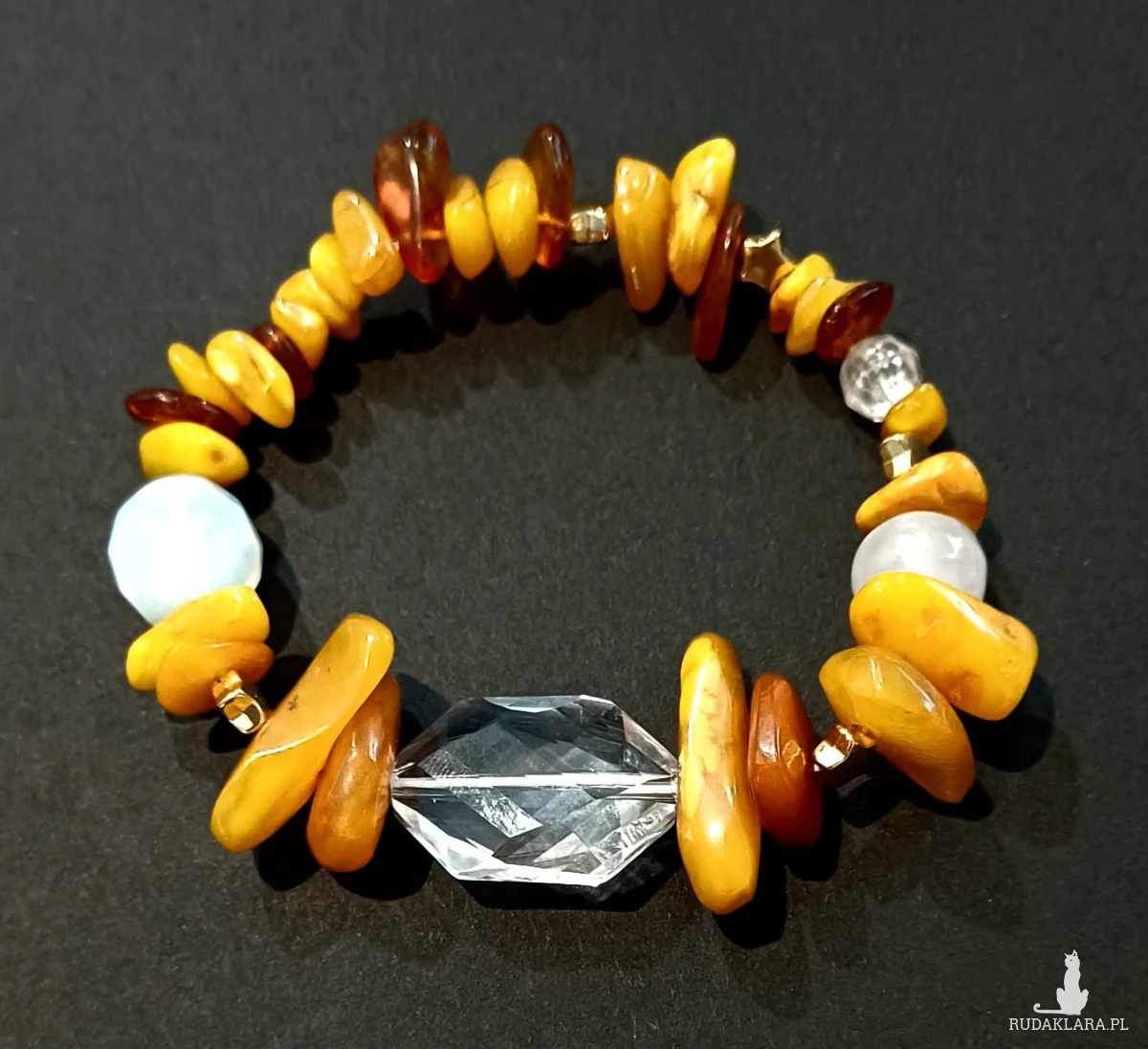 Miodowy bursztyn i szkło kryształowe i złote gwiazdki - genialna mieszanka aby ten projekt każdego zachwycił ! Idealny prezent dla wyjątkowej kobiety - która lubi niebanalną biżuterię !