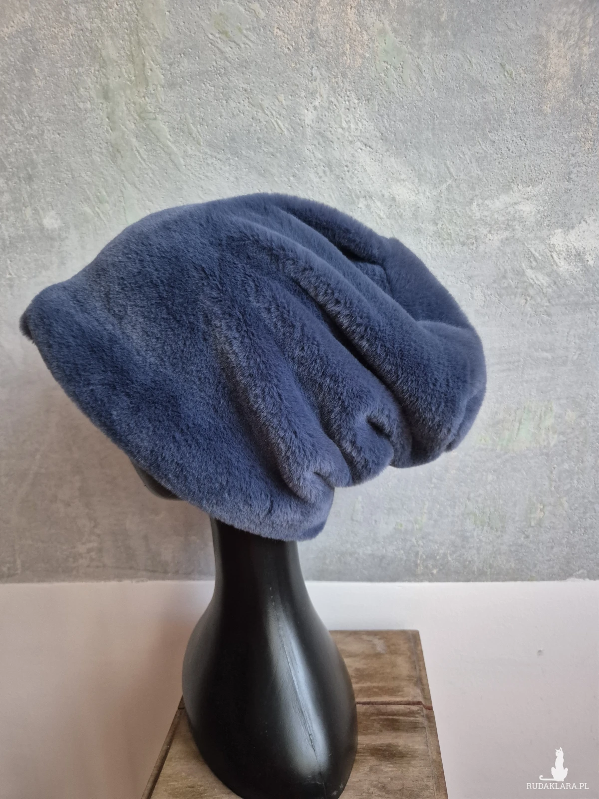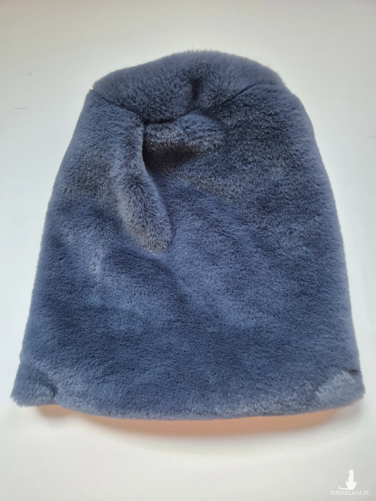 Czapka futrzana niebieska ociepła na podszewce, prezentuje się niezwykle oryginalnie nie dla szarej myszki dla odważnych pewnych siebie kobitek polecam pojedyncza sztuka box y1