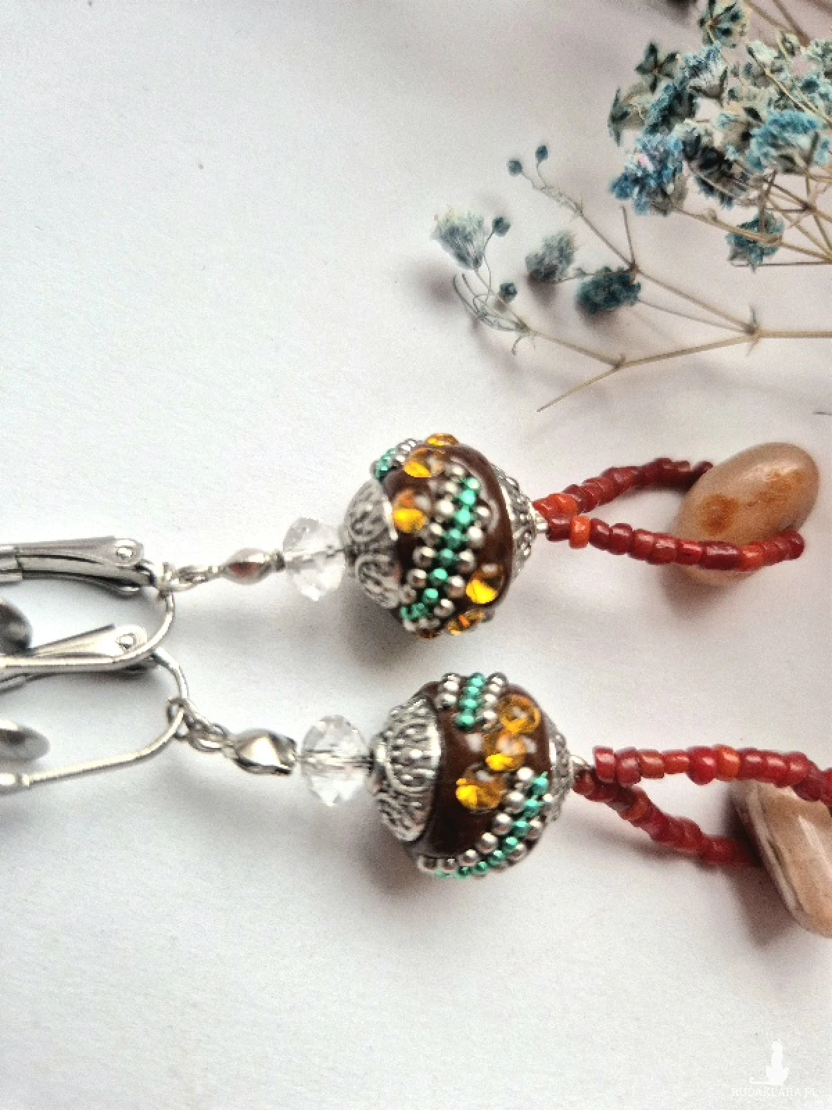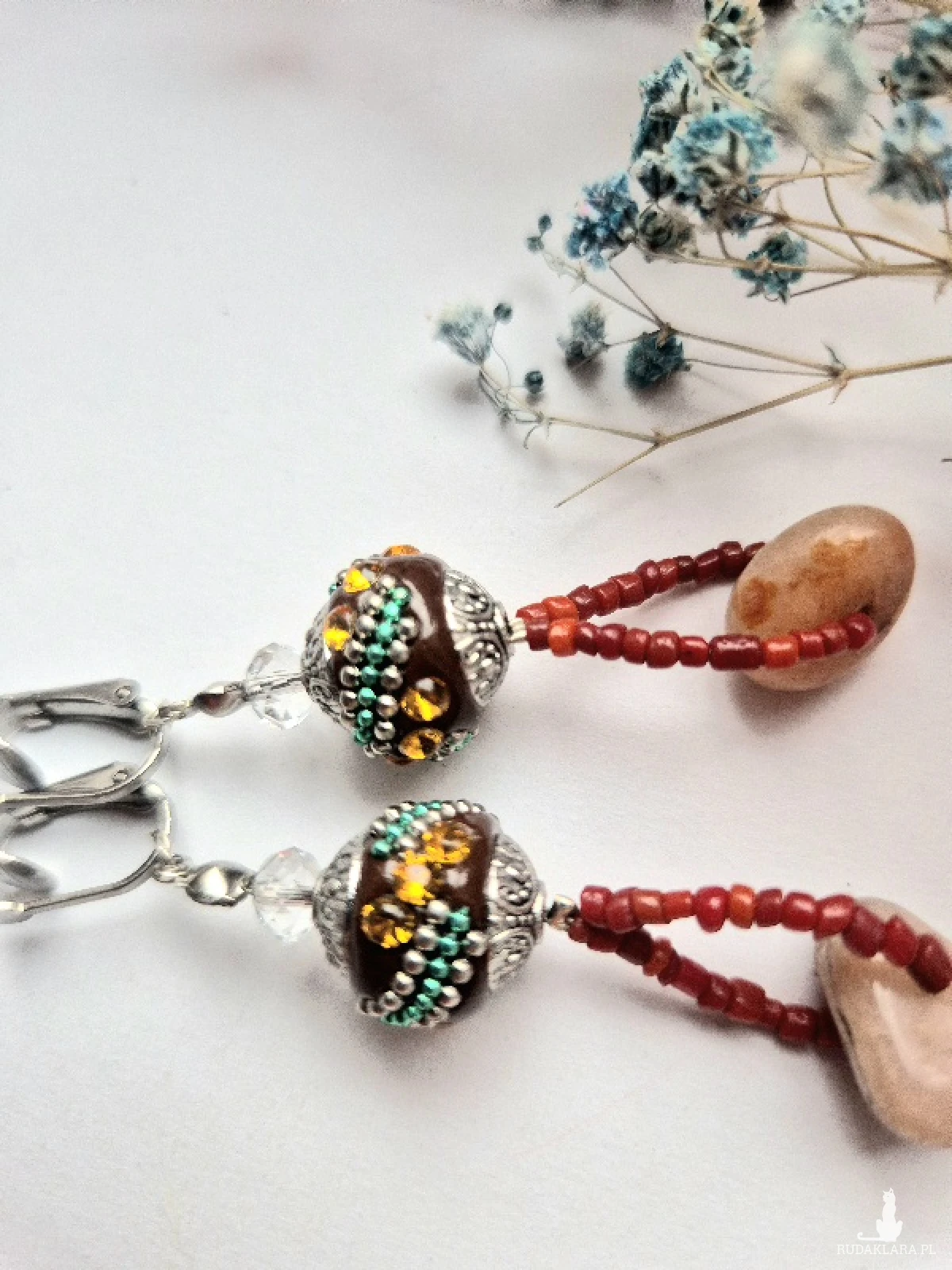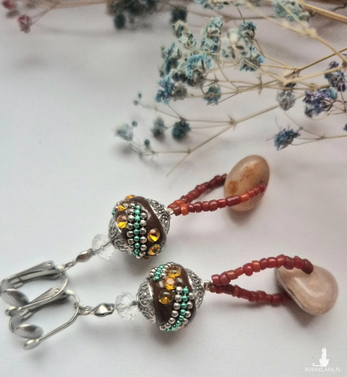 Klipsy orientalne Boho wykonane w pojedynczym egzemplarzu rękodzieło box x1