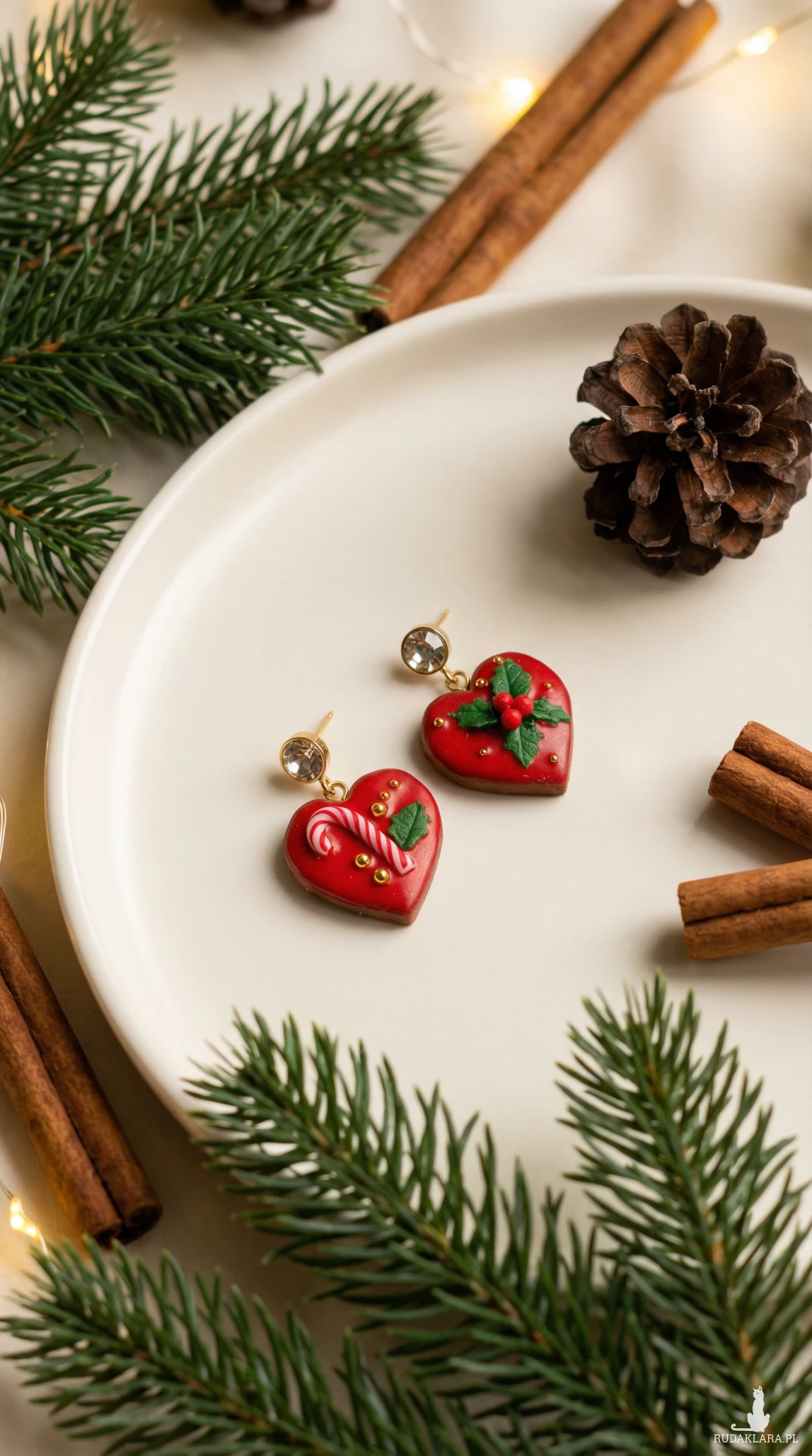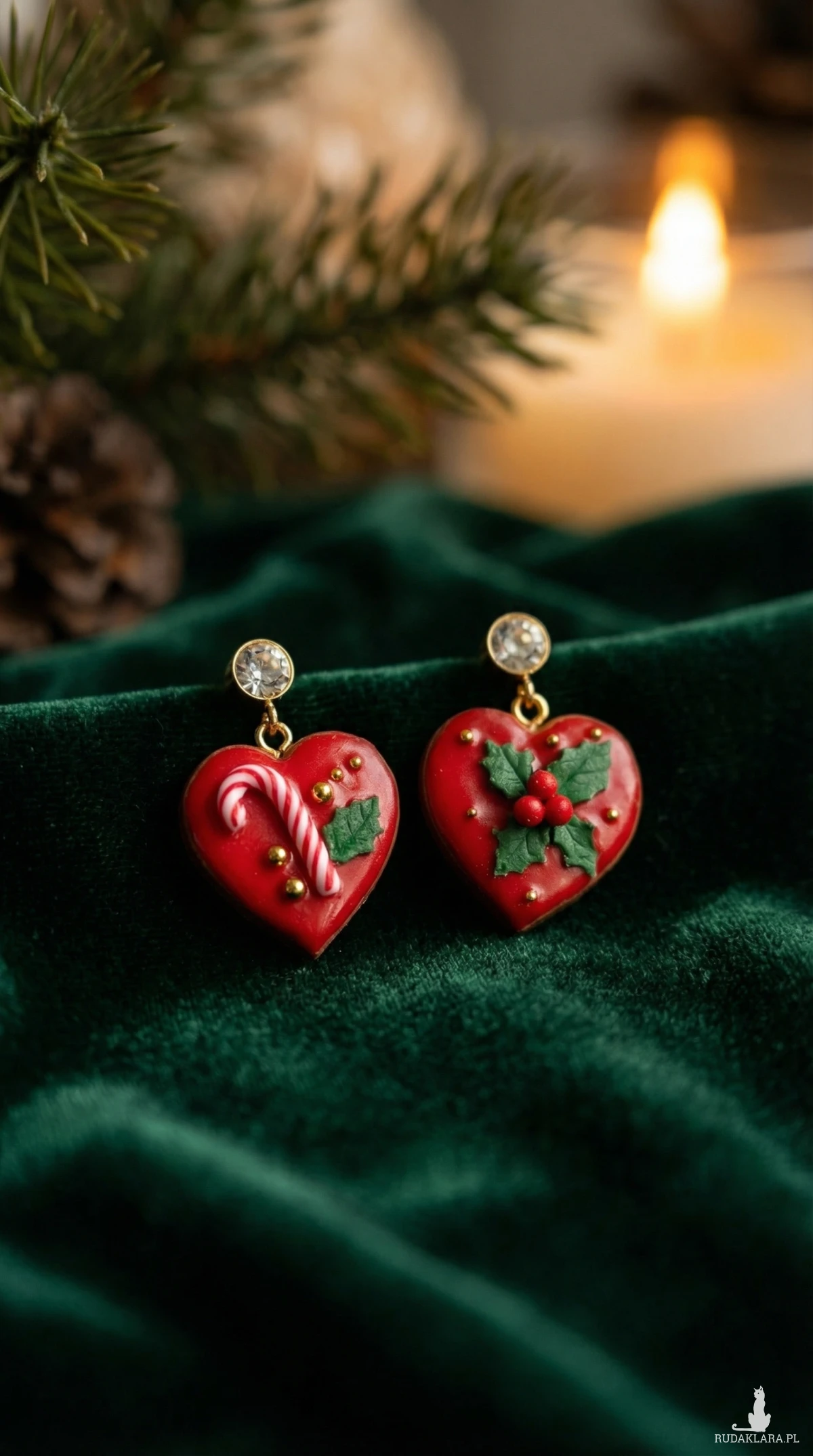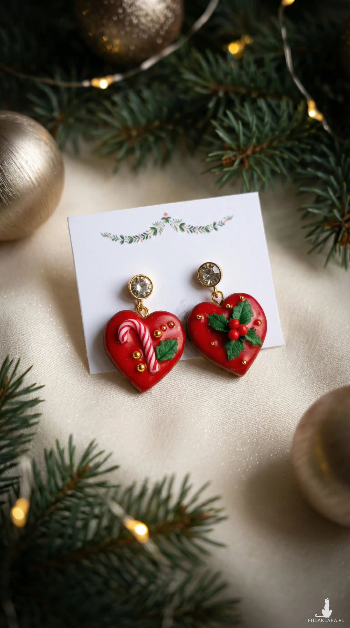 Świąteczne, pierniczkowe kolczyki z serduszkami.