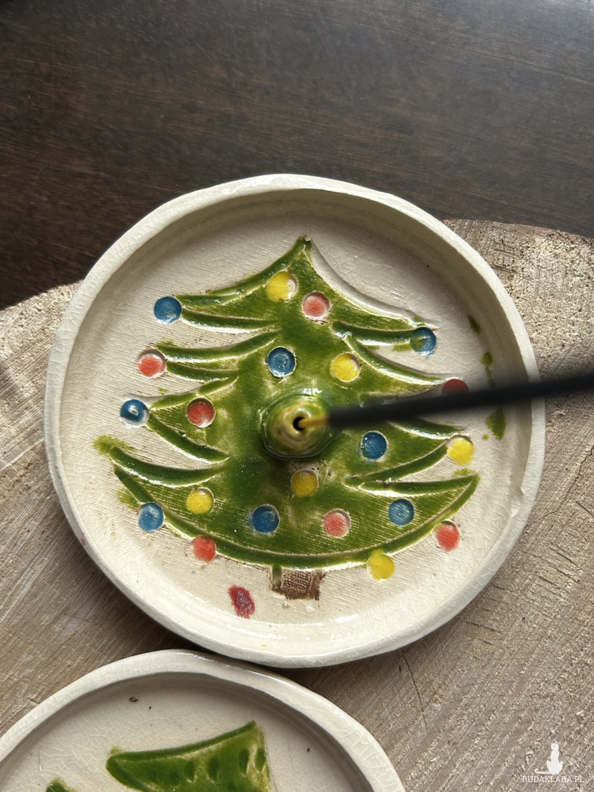 Ceramiczna postaweczka na kadzidełko wraz z talerzykiem na skarby.