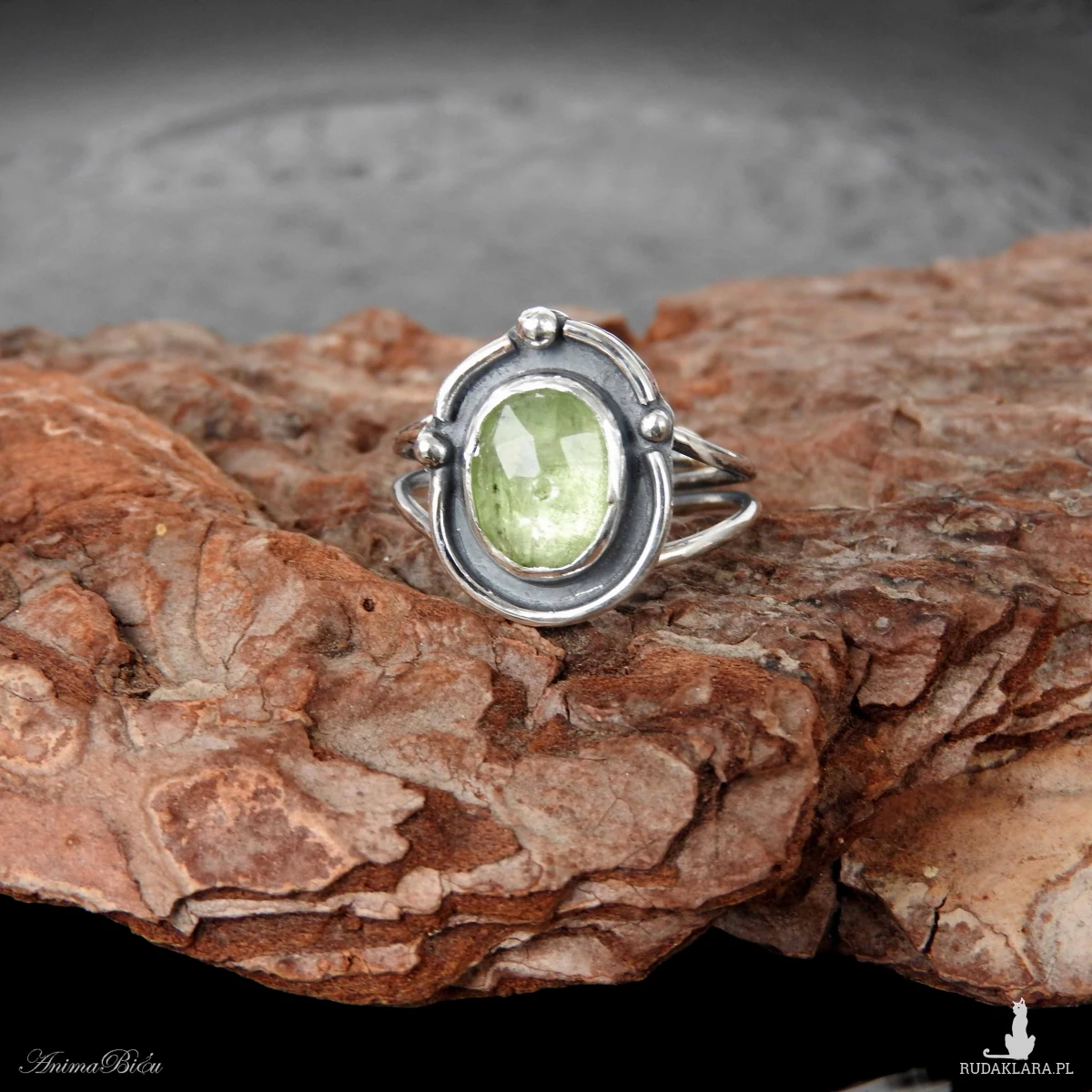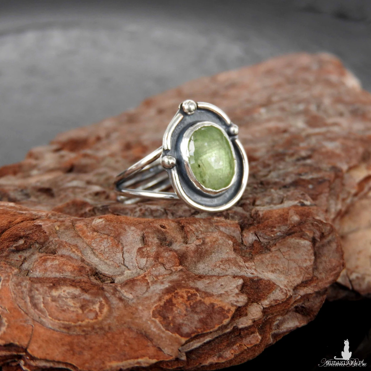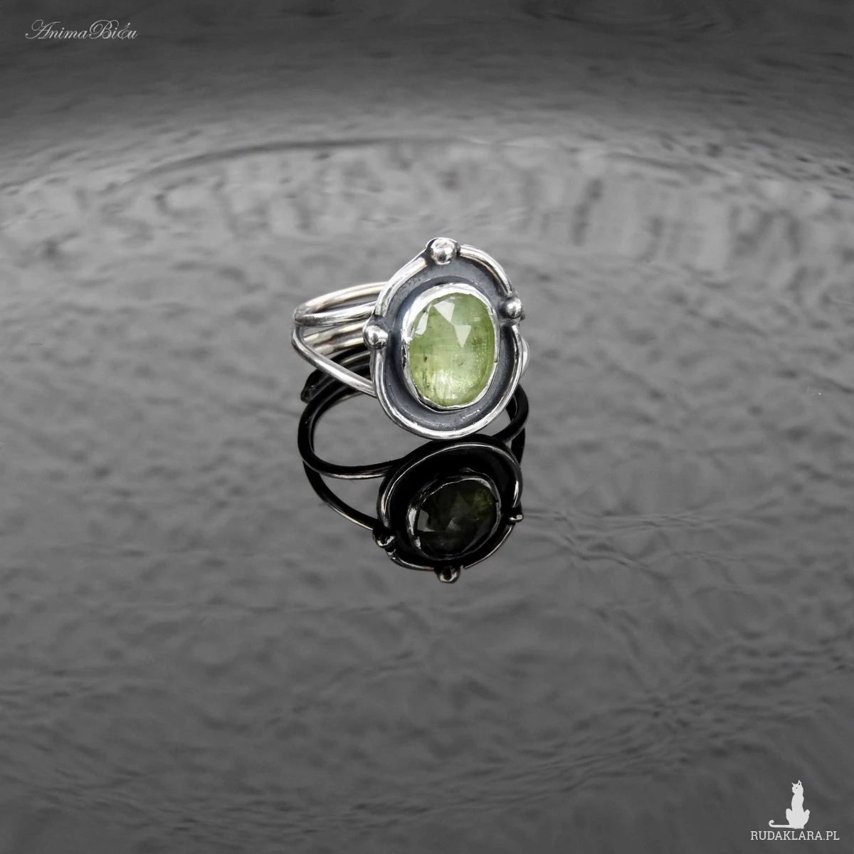 Pierścionek srebrny z zielonym kyanitem. Wykonany od podstaw