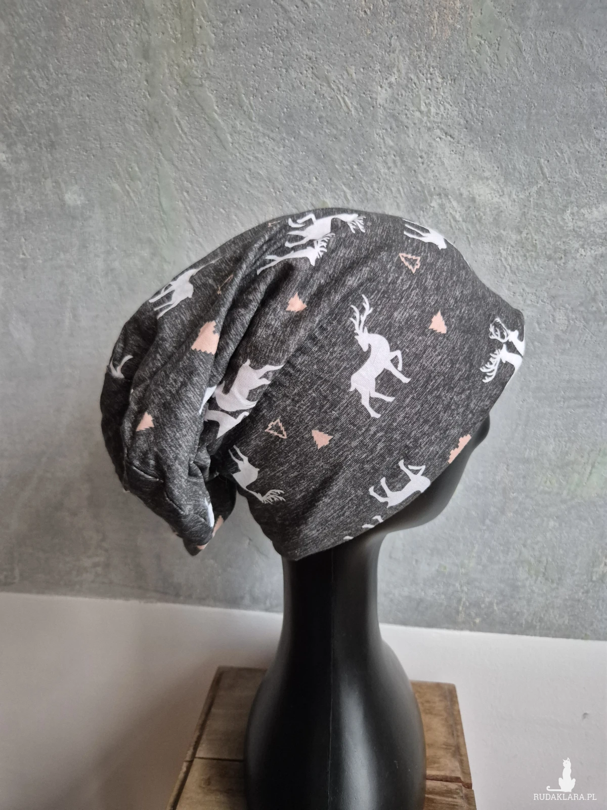 Czapka codzienna renifery .Uszyta w pojedynczym egzemplarzu, dzianina na podszewce, czapka jest przejściówką ,nie jest mega ciepła, raczej dla kogoś kto nosi czapki codziennie, w każdej sytuacji albo na początek wiosny box x1