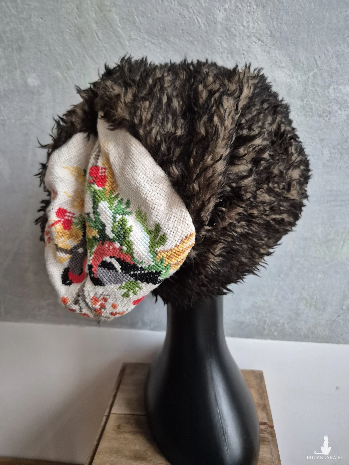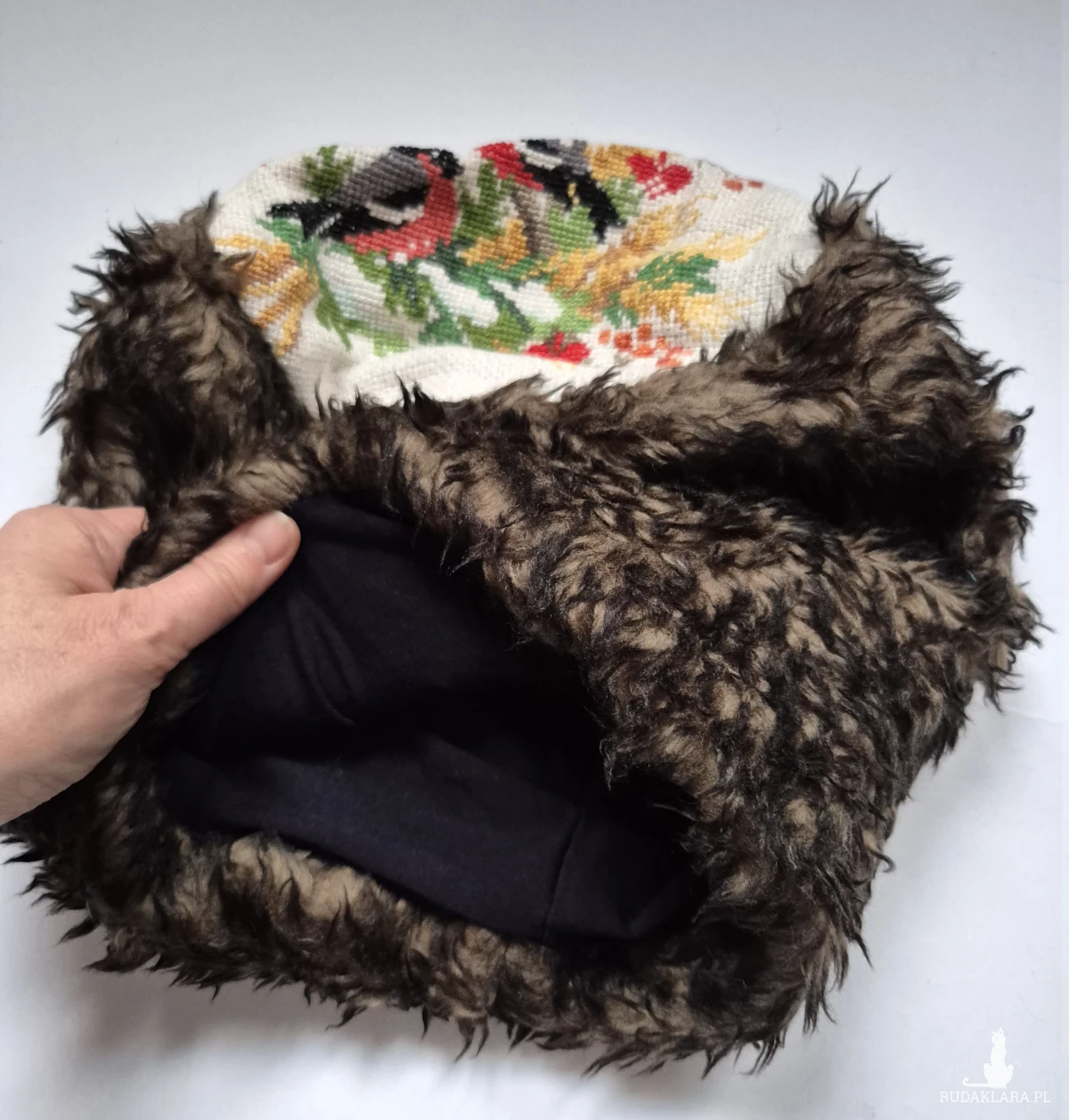 Czapka w rozmiarze M, obwód głowy 55 -56 cm, ciepła na podszewce niezwykle oryginalna miękka miła Uszyta w pojedynczym egzemplarzu, polecam Box X1