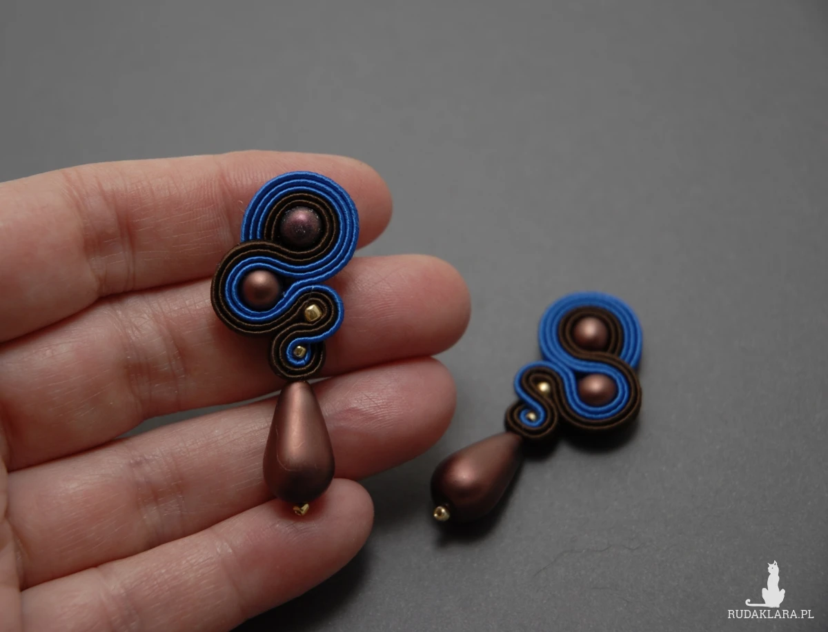 oferuję kolczyki lub klipsy zrobione haftem sutasz, ozdobione koralikami i drobnymi koralikami