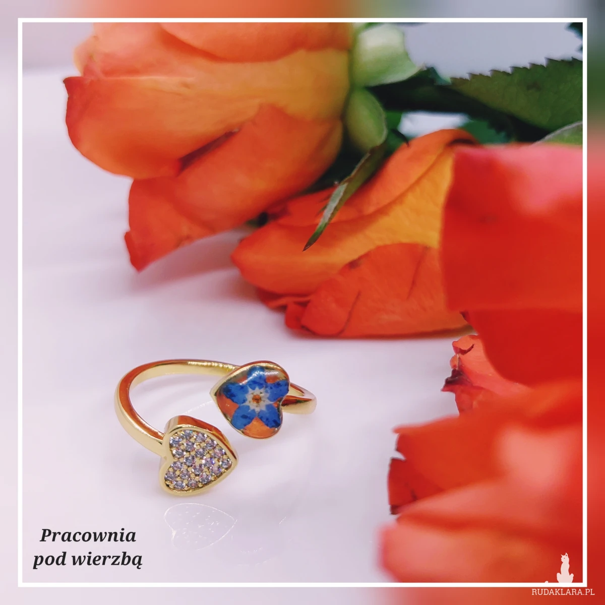 Jedno z cyrkoniami, drugie z prawdziwym kwiatem niezapominajki.