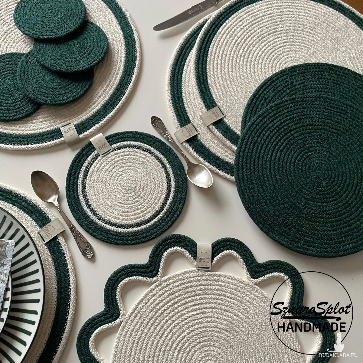 Wzór podkładek dwukolorowych uszytych ze sznurka w kolorach: 02 i 12