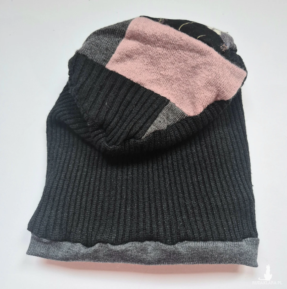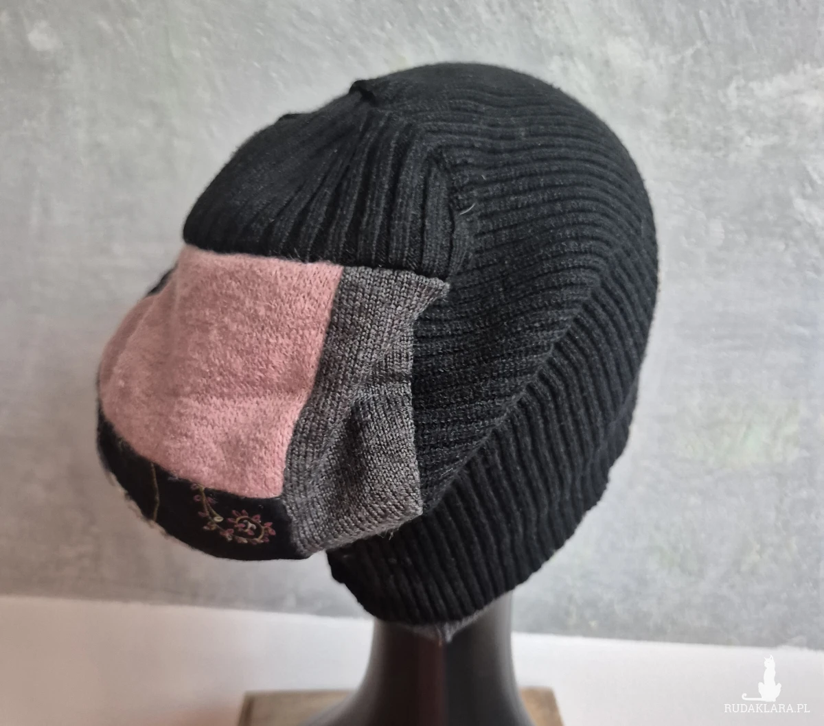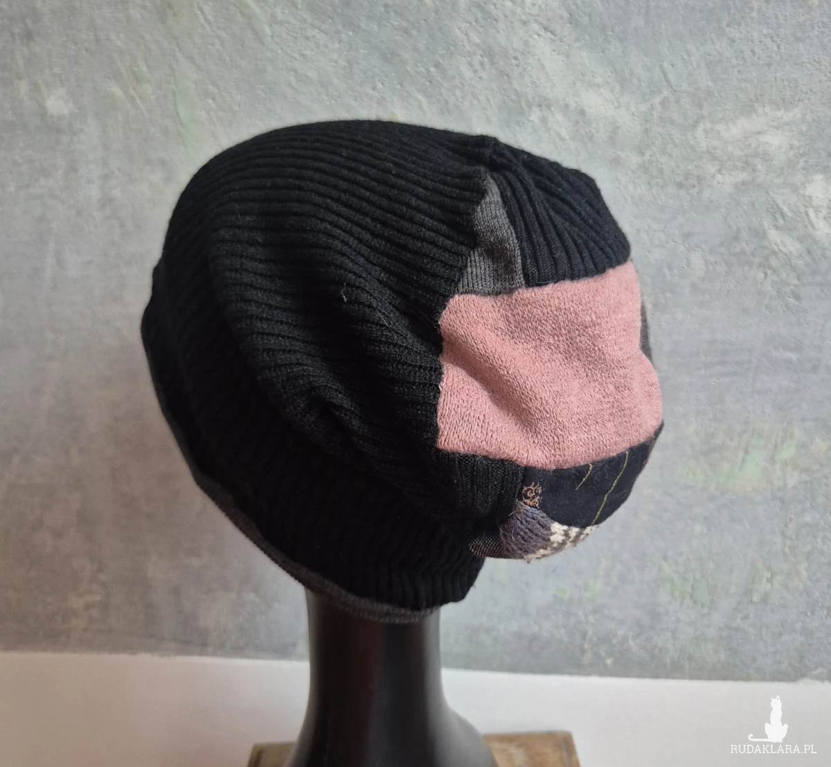 Czapka czarna na podszewce rozmiar uniwersalny Góra kolorowa rękodzieło ciepła wykonana w pojedynczym egzemplarzu Box 44