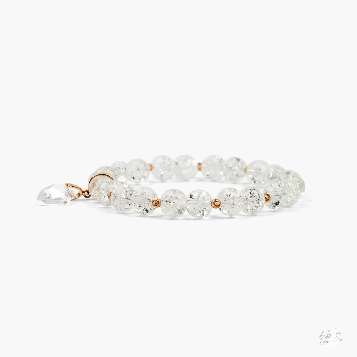 Unikatowa bransoletka z kamieni naturalnych wykonana z kwarcu lodowego zachwyca swoją krystaliczną przejrzystością i subtelnym blaskiem. Kwarc lodowy od wieków uznawany jest za kamień czystości, harmonii i wewnętrznego spokoju. Każdy kamień posiada niepowtarzalną strukturę, dzięki czemu Twoja bransoletka jest absolutnie jedyna w swoim rodzaju. To idealny wybór dla osób ceniących naturalne piękno oraz symboliczne znaczenie biżuterii.