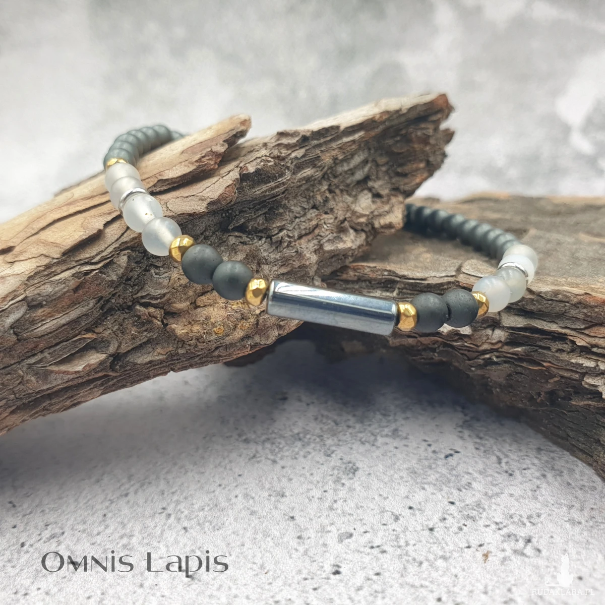 W centrum bransoletki umieściłam wałeczek błyszczącego hematytu.