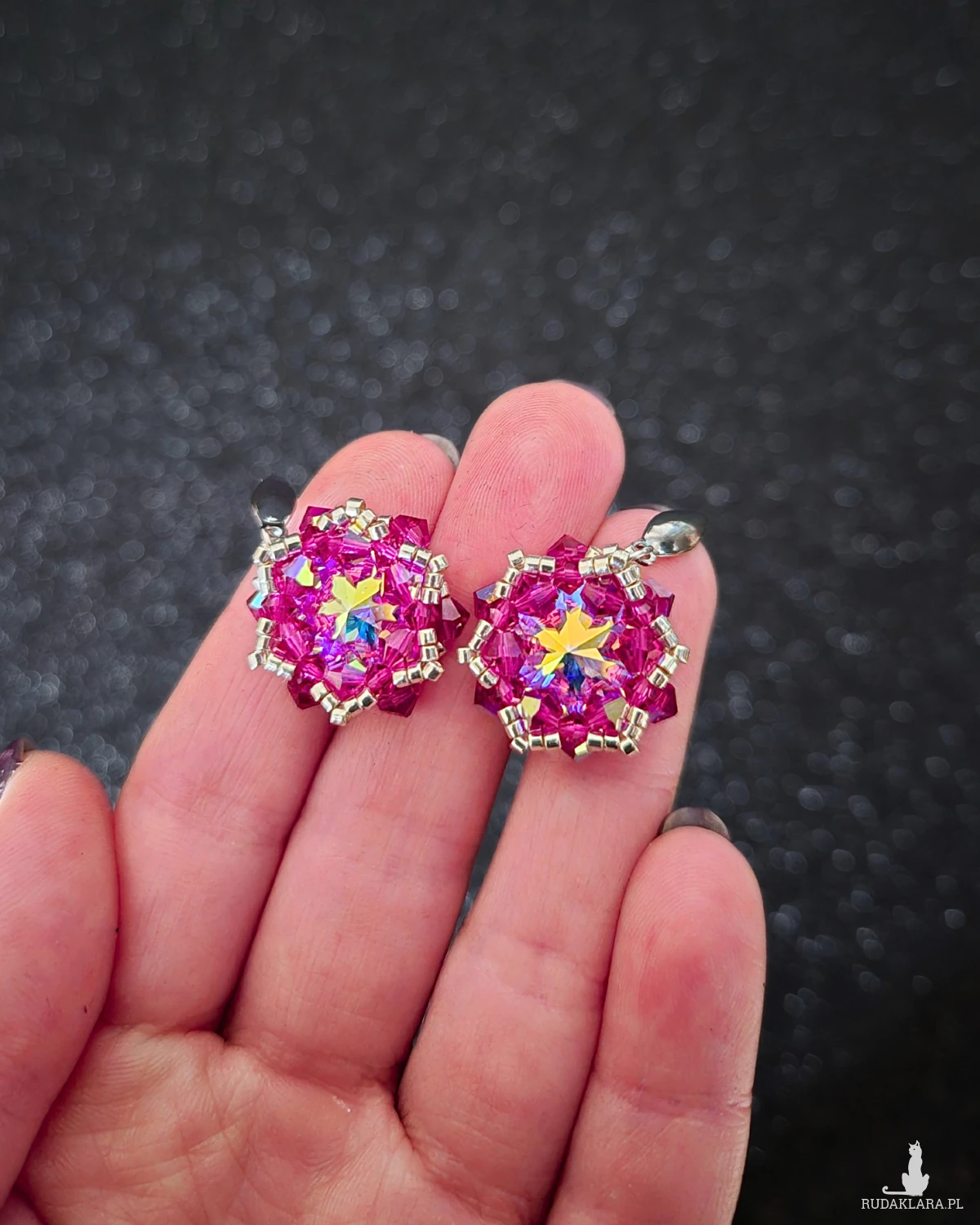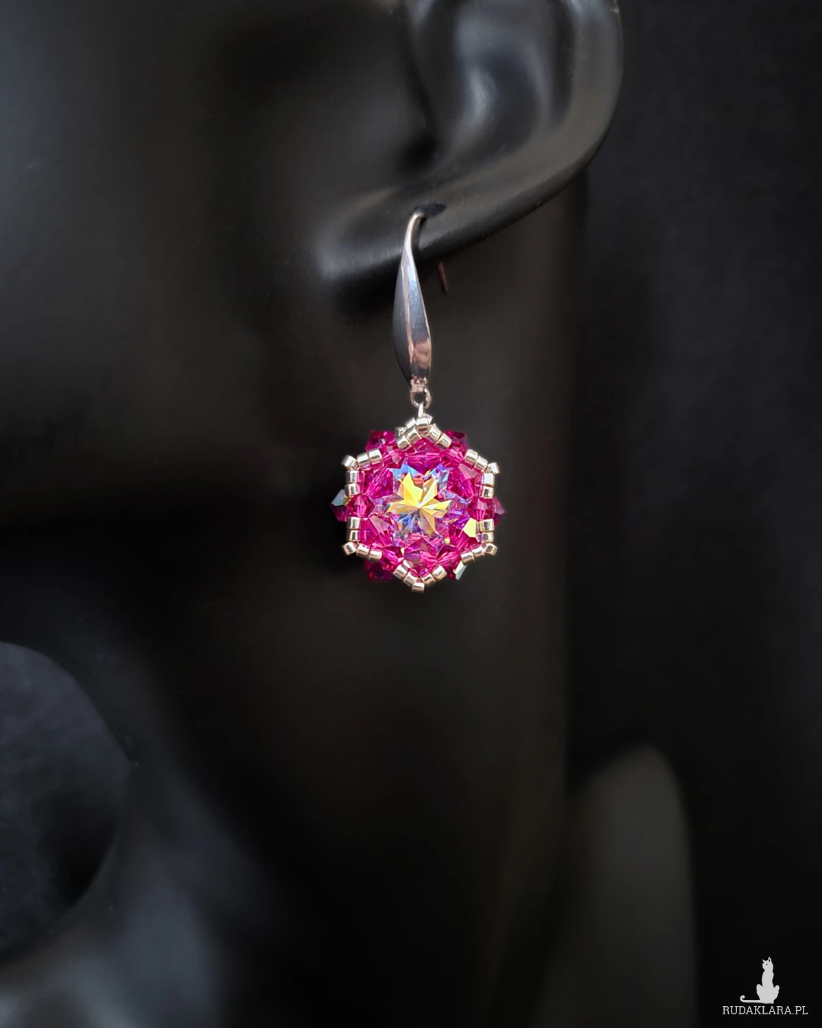 ✔ Materiały: Kamienie Preciosa Crystal Rivoli Maxima, kryształki Preciosa Bicone 4 mm (Fuchsia AB) i 3 mm (Fuchsia), koraliki Miyuki Delica, stal nierdzewna