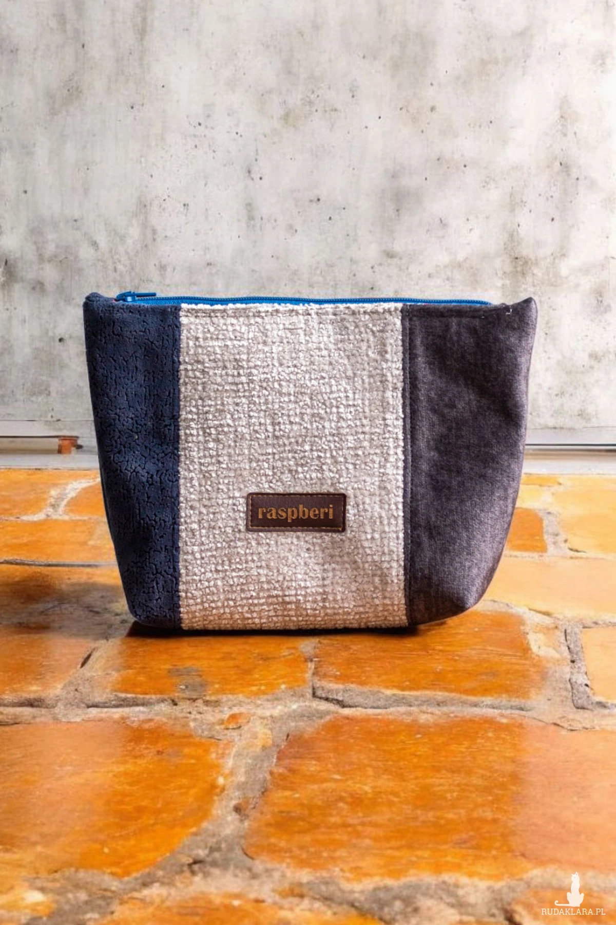 Duża kosmetyczka z kilku rodzajów kolorowych tkanin Stworzona w duchu no waste. Bardzo przyjemna w dotyku.