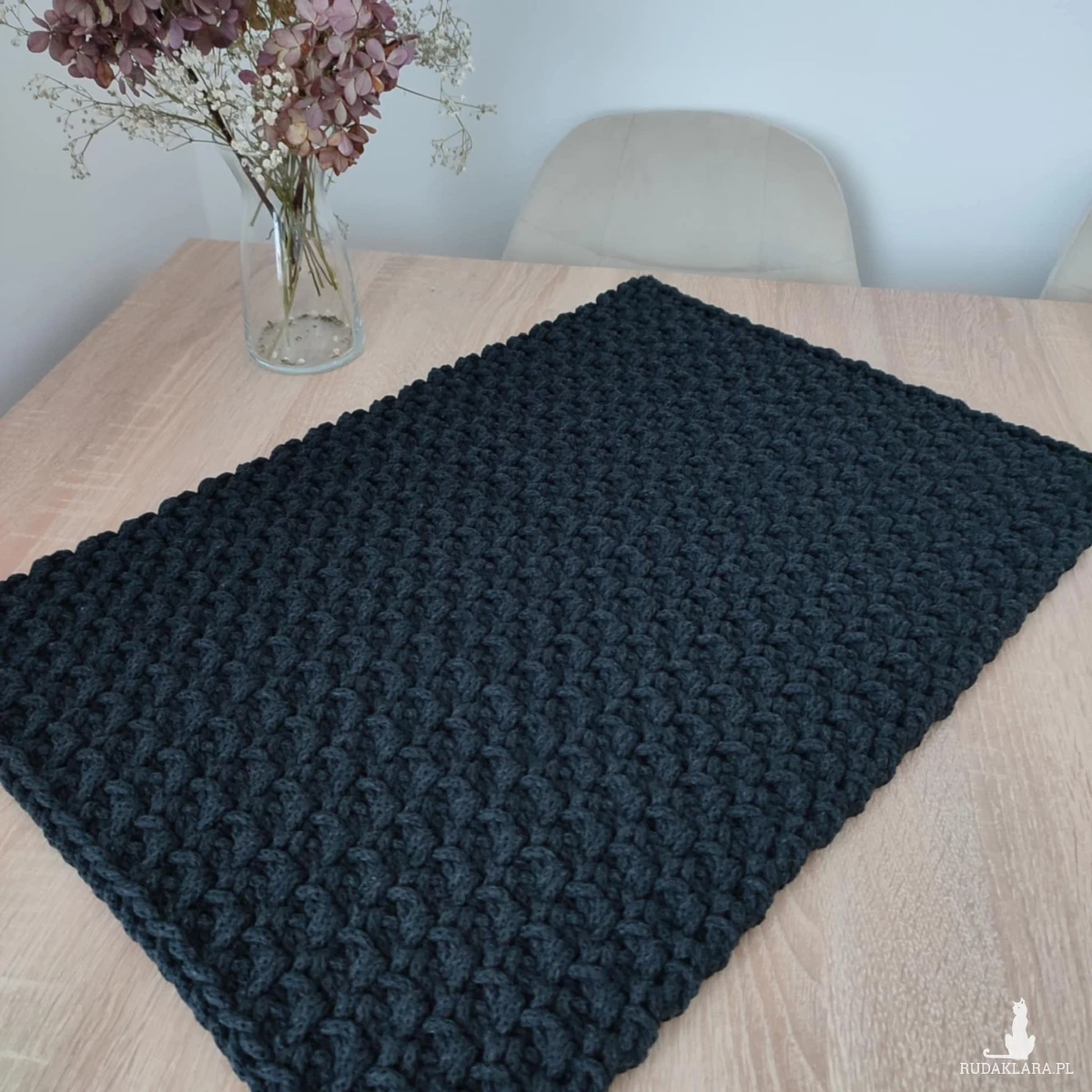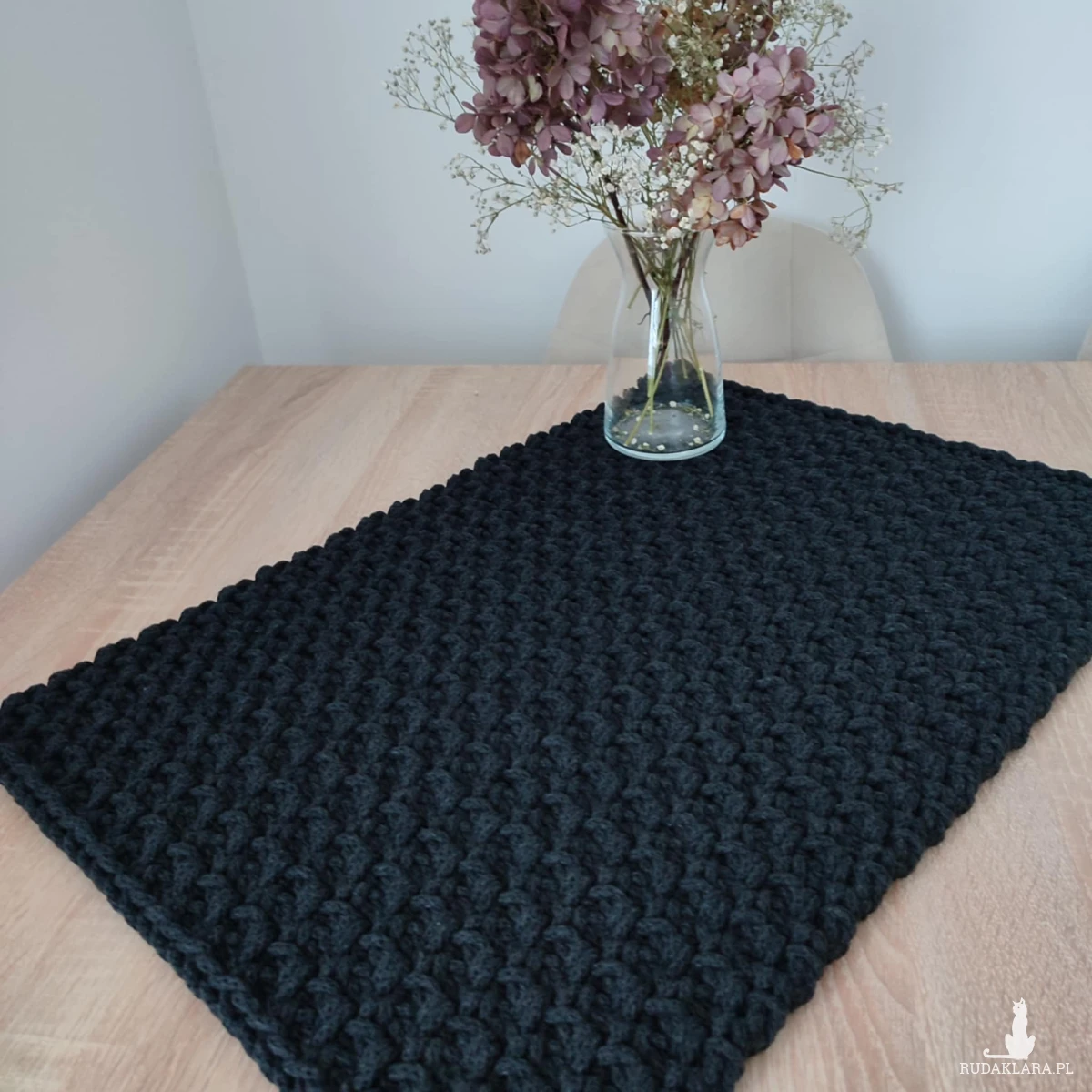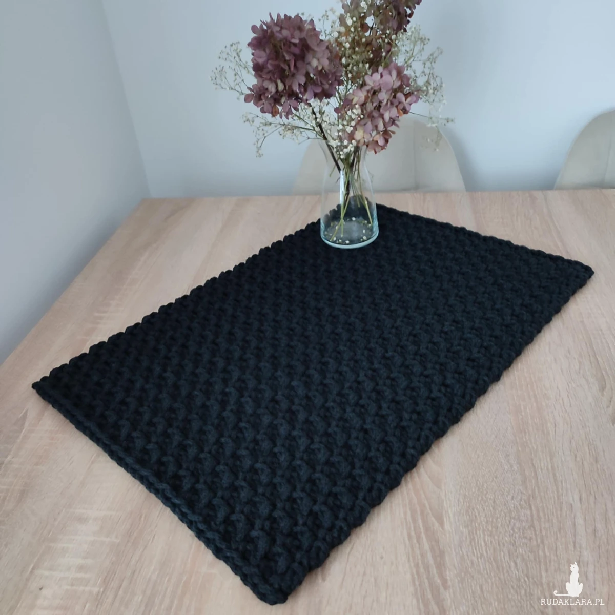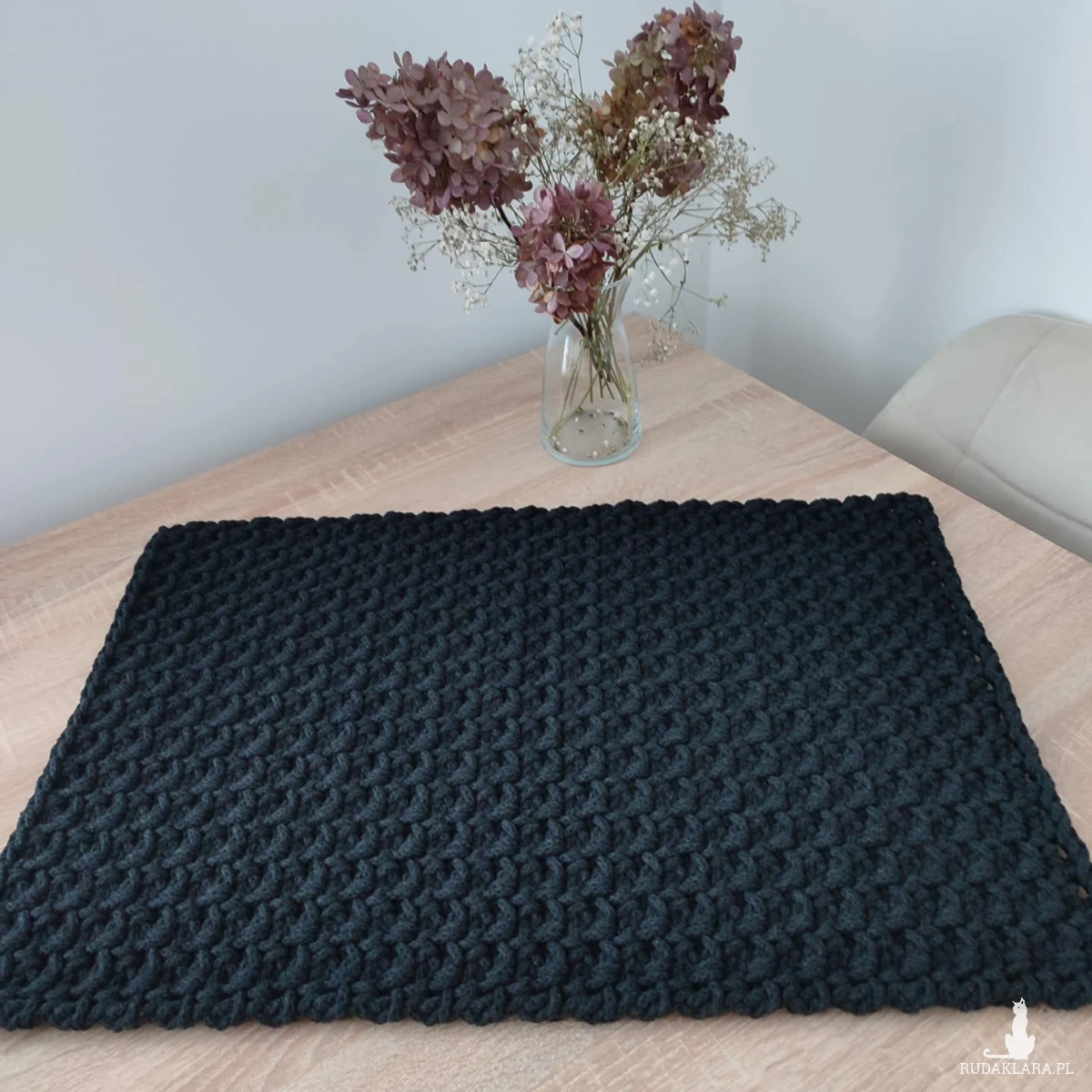 Bieżnik o wymiarach 40cmx60cm, wykonany metodą szydełkowania z polskiego sznurka bawełnianego 5mm.