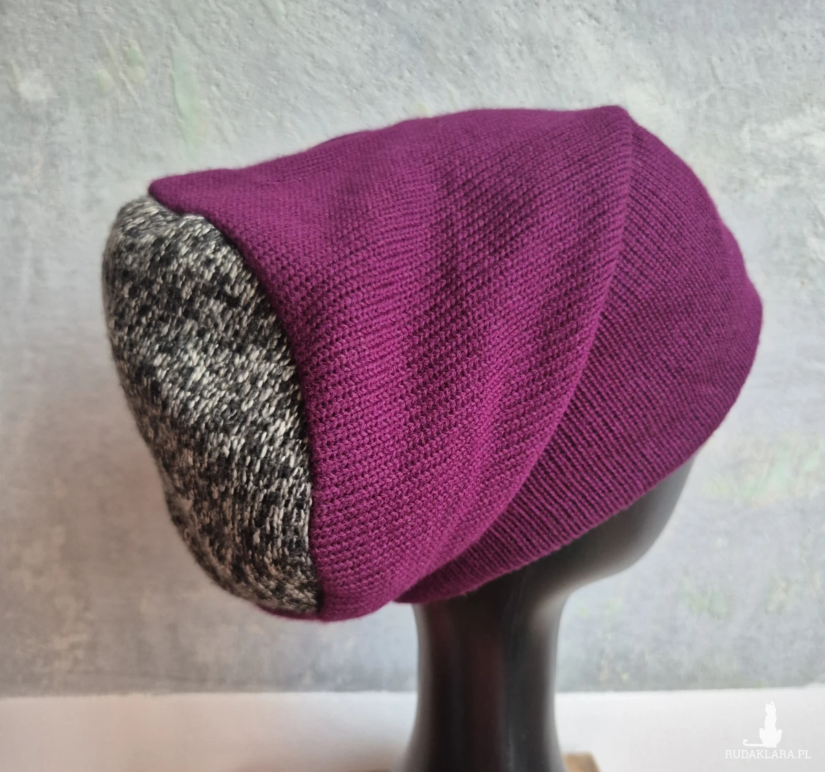 Czapka damska Smerfetka fioletowa uniwersalna  i miła, dobra na codzienne noszenie, wykonana w pojedynczym egzemplarzu rękodzieło polecam boks x1