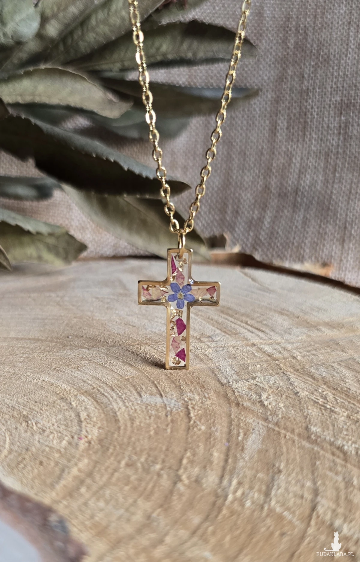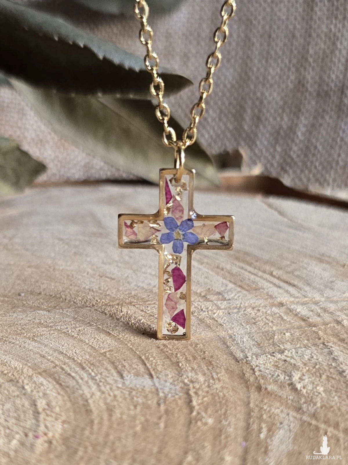 Złota zawieszka złoty wisiorek kwiat naszyjnik żywica z żywicy kwiaty z kwiatami krzyż krzyżyk róża