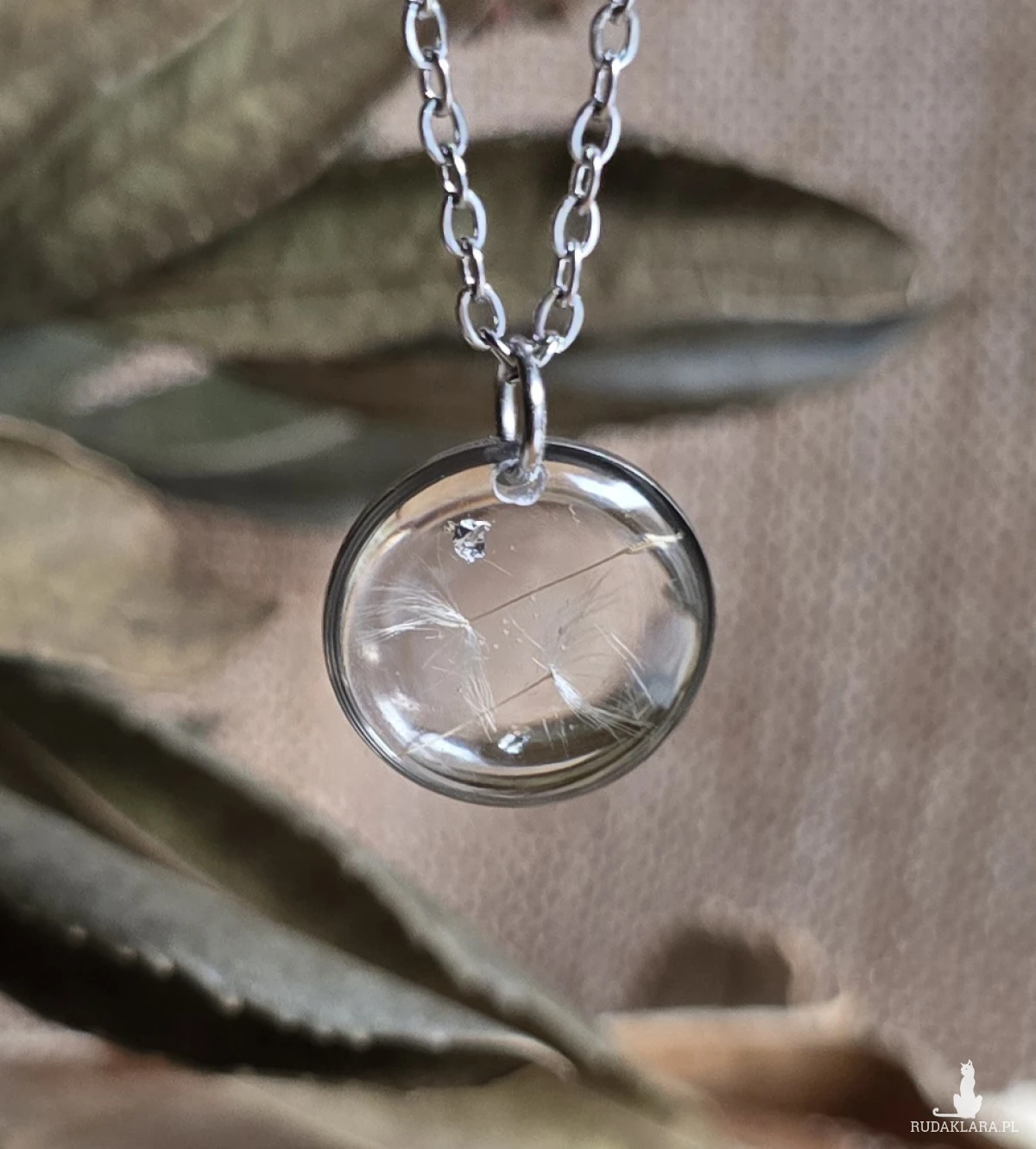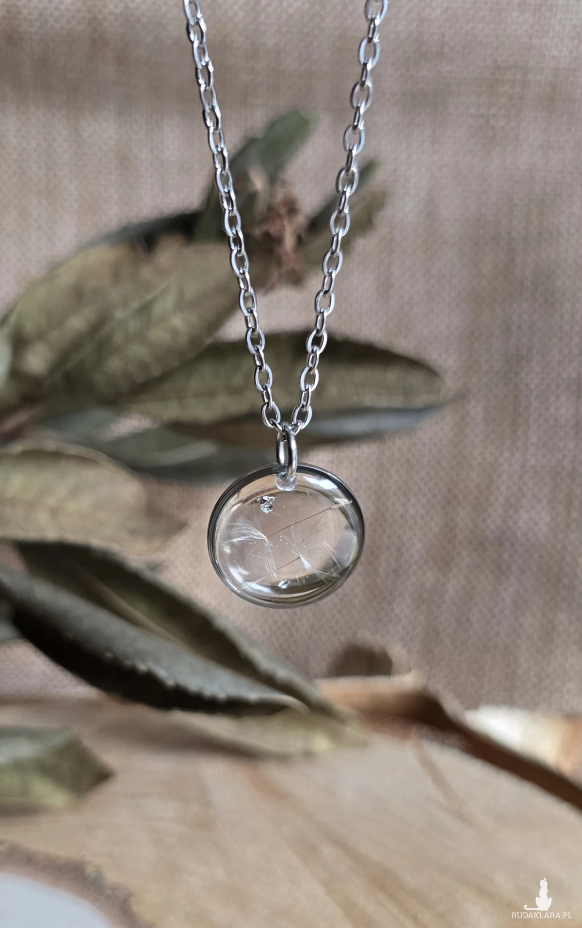 Oferuję Państwu unikalną biżuterię. Zawieszka jest wykonana z suszonych kwiatów i żywicy epoksydowej. Biżuteria jest wspaniałym i oryginalnym prezentem na lata.