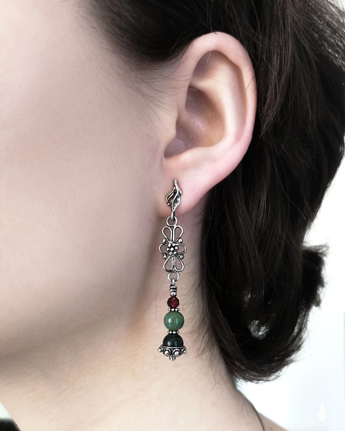 Kolczyki Scarlett, agat mszysty, granat, srebro 925, kolekcja Przeminęło z Wiatrem