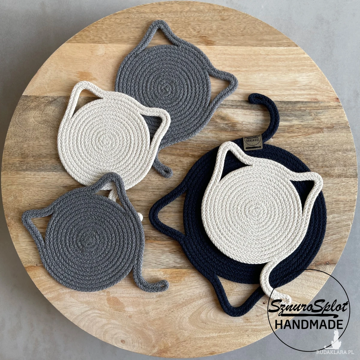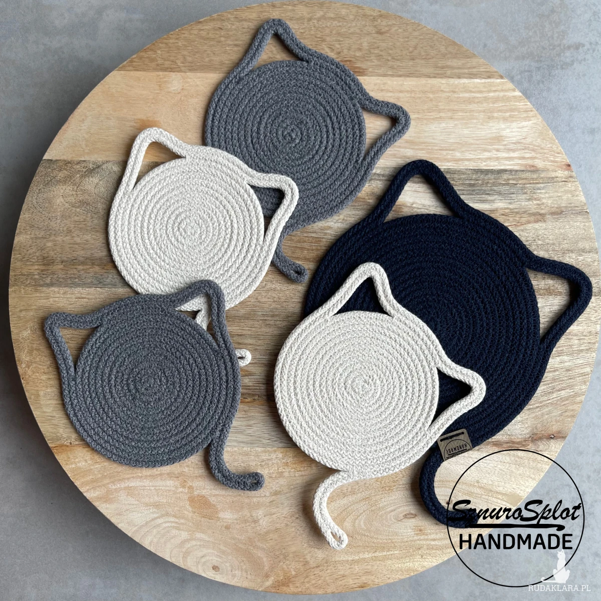Zestaw pięciu podkładek pod kubki z bawełnianego sznurka.