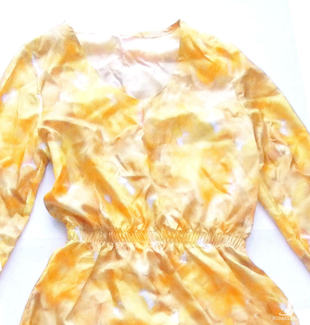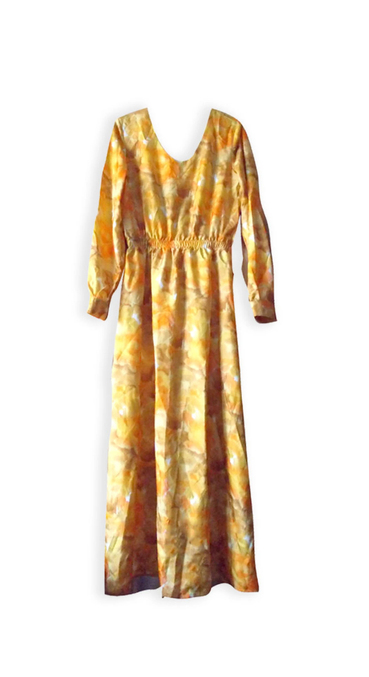 Nowa, oryginalna sukienka w stylu boho. Została uszyta z kuponu naturalnego jedwabiu. Sukienka zwiewna, prosta i elegancka. Długa sukienka, rozcięcie z boku (do wysokości kolana). Długi rękaw zapinany na guziczek. W pasie gumka, dekolt w szpic. Wymiary na płasko: