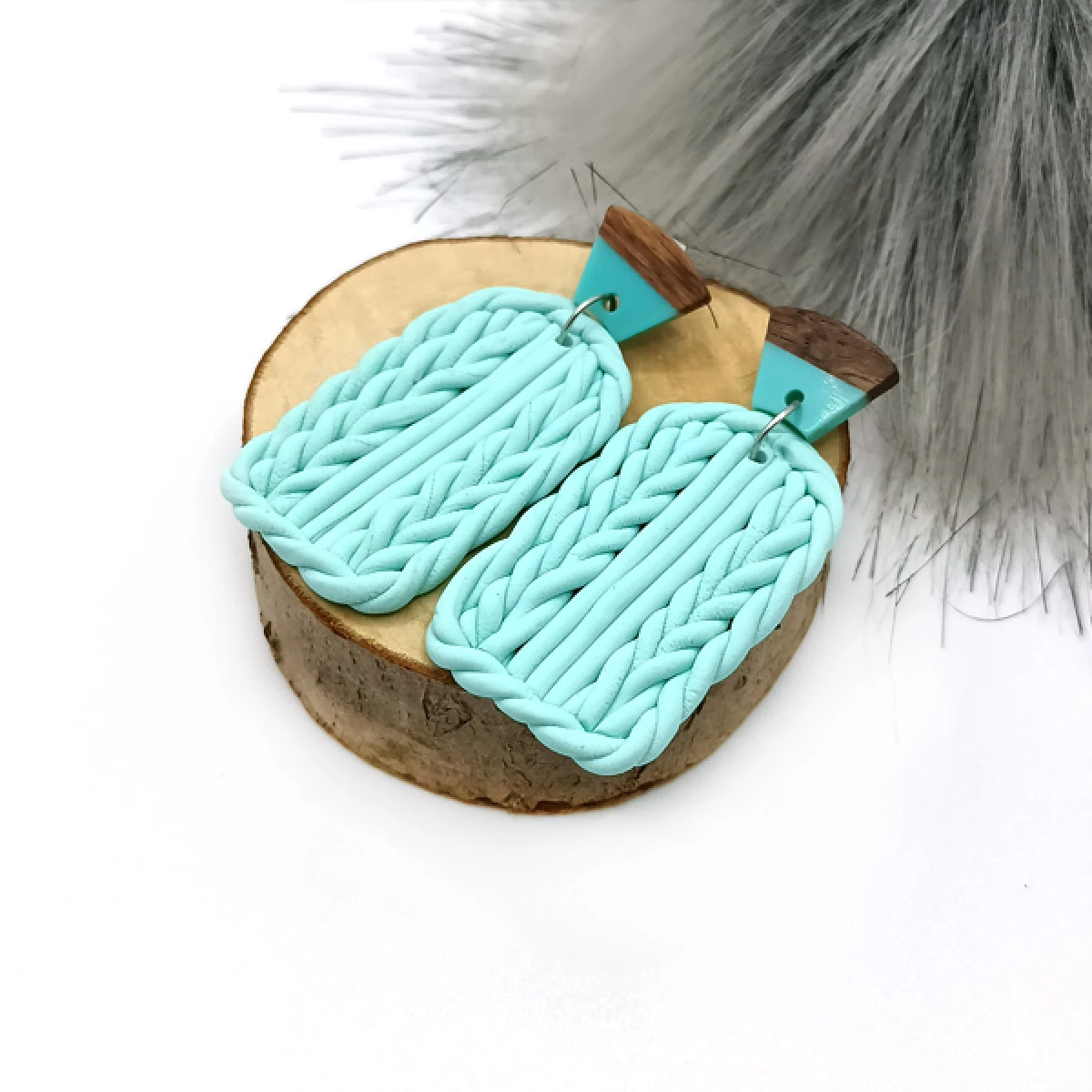 Kolczyki zostały wykonane w całości ręcznie z wysokiej jakości glinki polimerowej. Jest to materiał bardzo trwały, lekki i odporny na wszelkiego rodzaju czynniki zewnętrzne. Kolczyki są w kolorze miętowym, zawieszone na biglach ozdobnych z drewna orzechowego i żywicy, sztyfty ze stali chirurgicznej. Długość kolczyka z biglem 5,5 cm, szerokość 2,8 cm. Są bardzo lekkie i pasują do każdej stylizacji na każdą porę dnia. Biżuteria pakowana jest w ozdobne pudełko.
