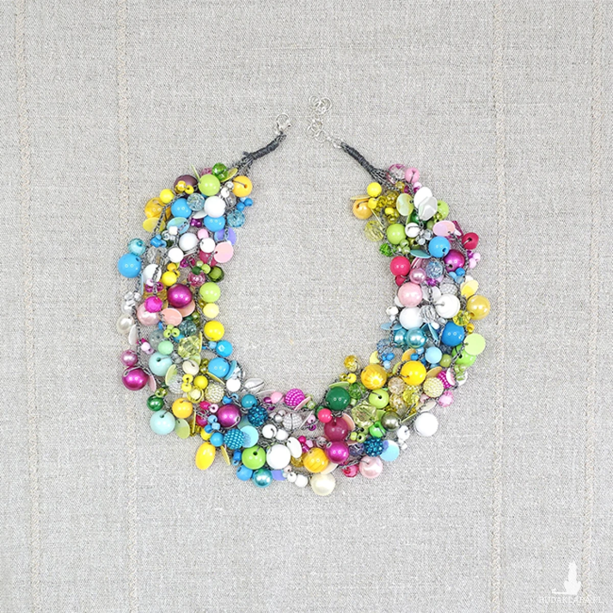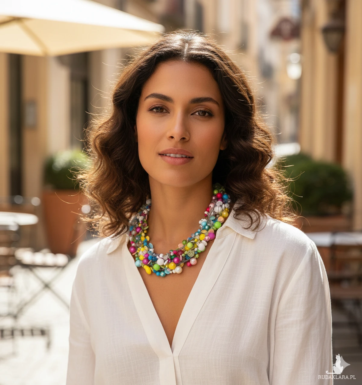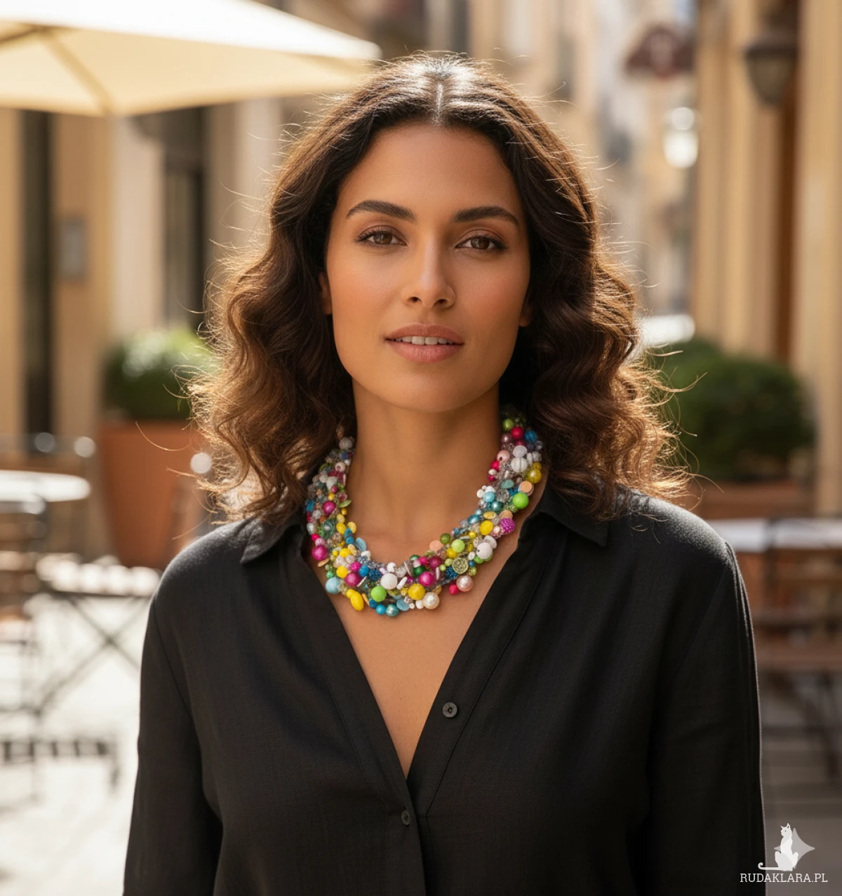 Zanurz się w feerii barw z naszym pięciosznurkowym naszyjnikiem! Połączenie koralików z akrylu, drewna, szkła i migoczących cekinów tworzy unikalną mozaikę kolorów. To idealny dodatek, aby dodać energii każdej stylizacji. Materiały: akryl, drewno, szkło, cekiny (4-12 mm). 5 sznurków. Obwód: 50 cm plus 5 cm regulacji. Waga: 94 g. Zapięcie: antyalergiczne (bez niklu, kadmu i ołowiu). Zdjęcia oznaczone w prawym dolnym rogu to wizualizaje Ai.