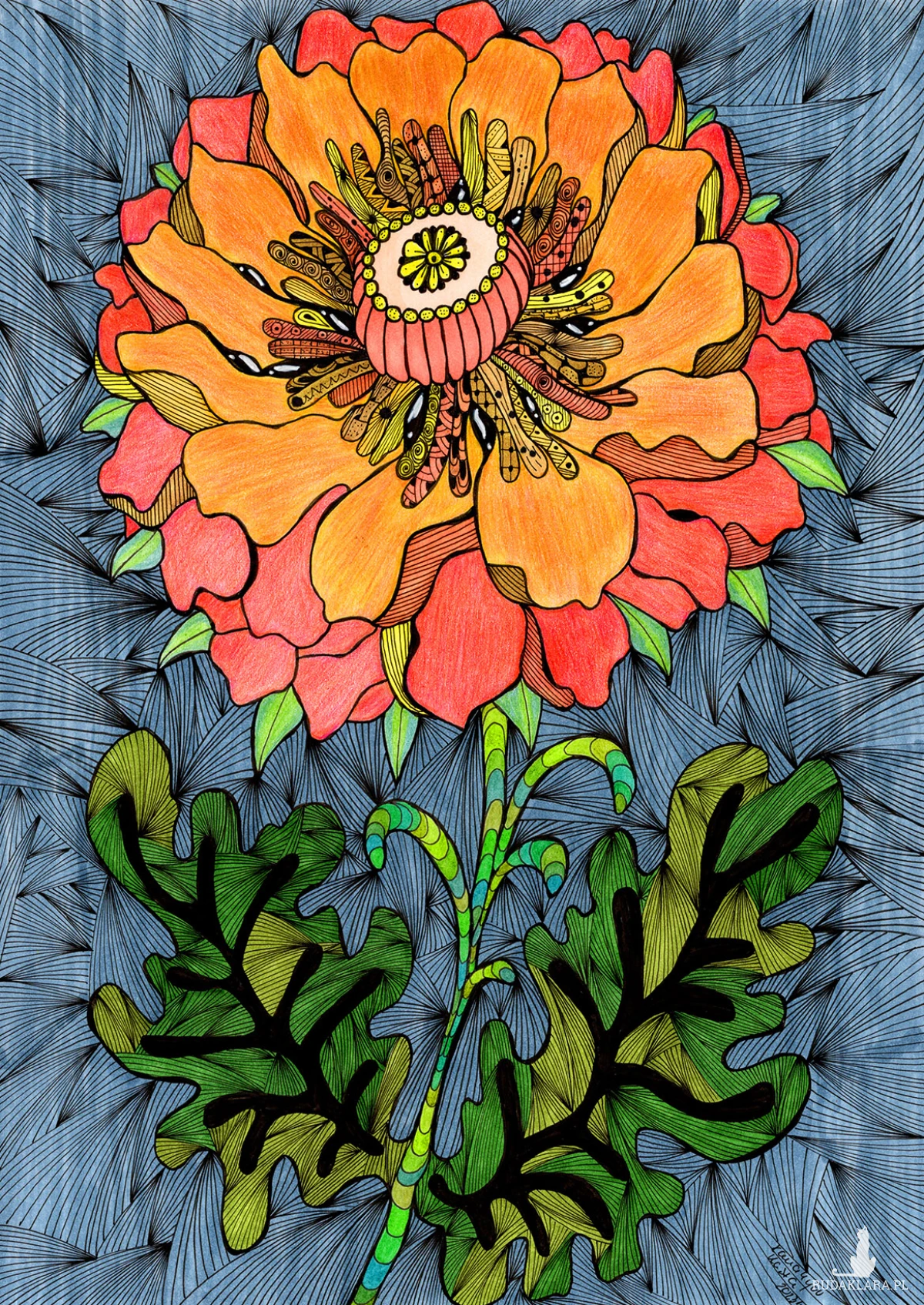 Ilustracja Botaniczna, Ekspresja Koloru, Stylizacja Liniowa, Doodle Art/Zentangle Inspired, Pop Art