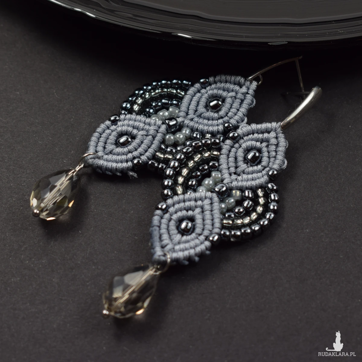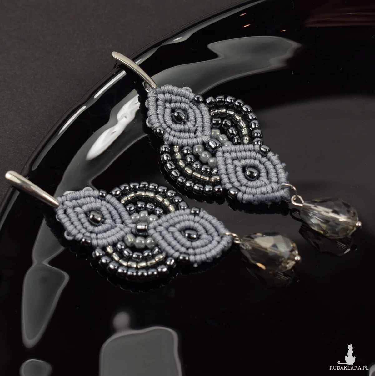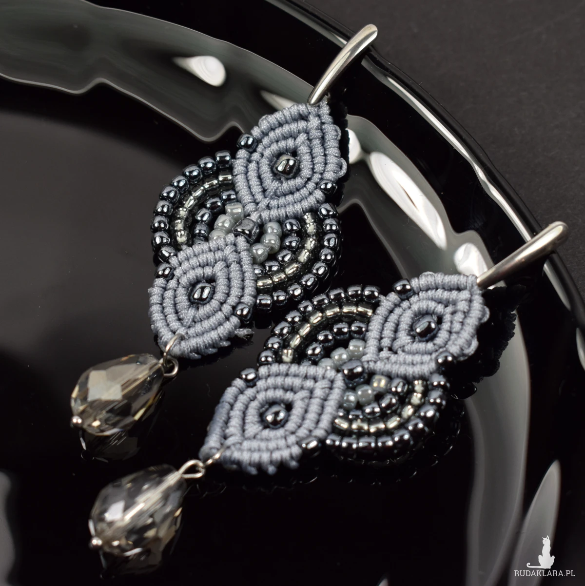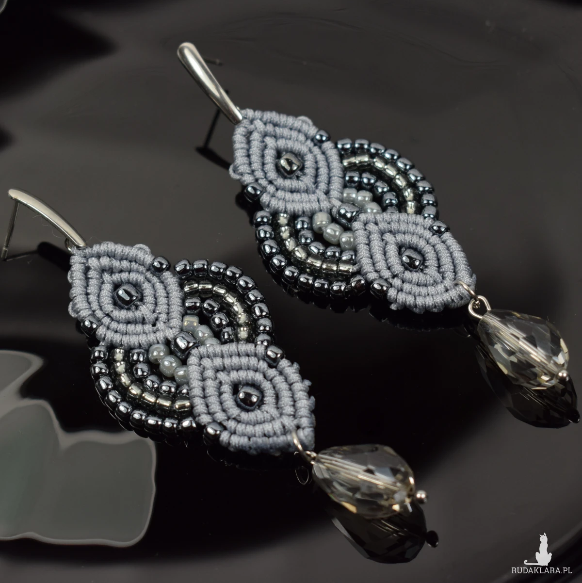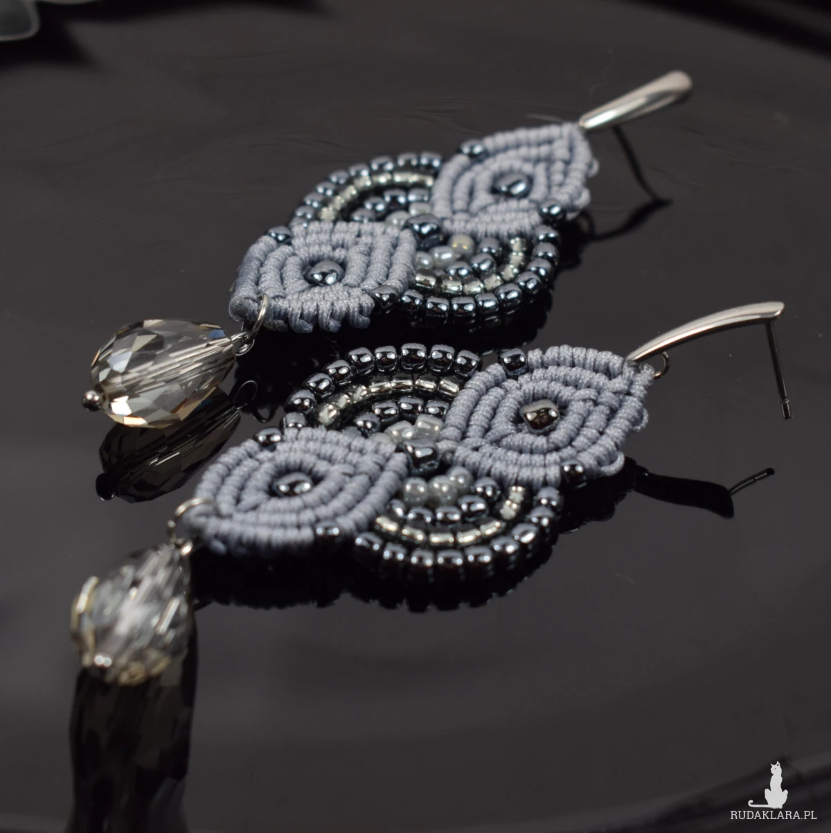 Długie kolczyki z koralików w odcieniach szarości i srebra - eleganckie,