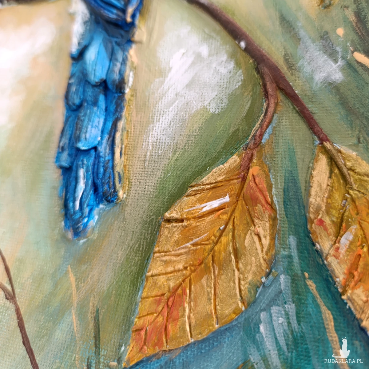 detale - warstwowo nakładana faktura podkreśla pióra, a intensywne