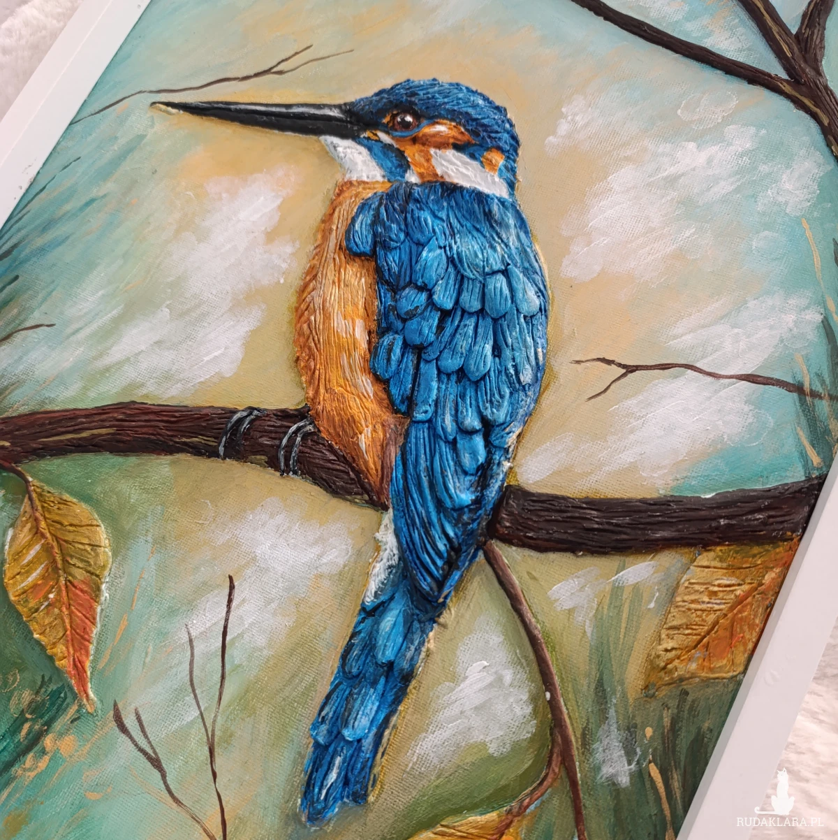(płaskorzeźbę) z ręcznym malarstwem akrylowym, dzięki czemu ptak i