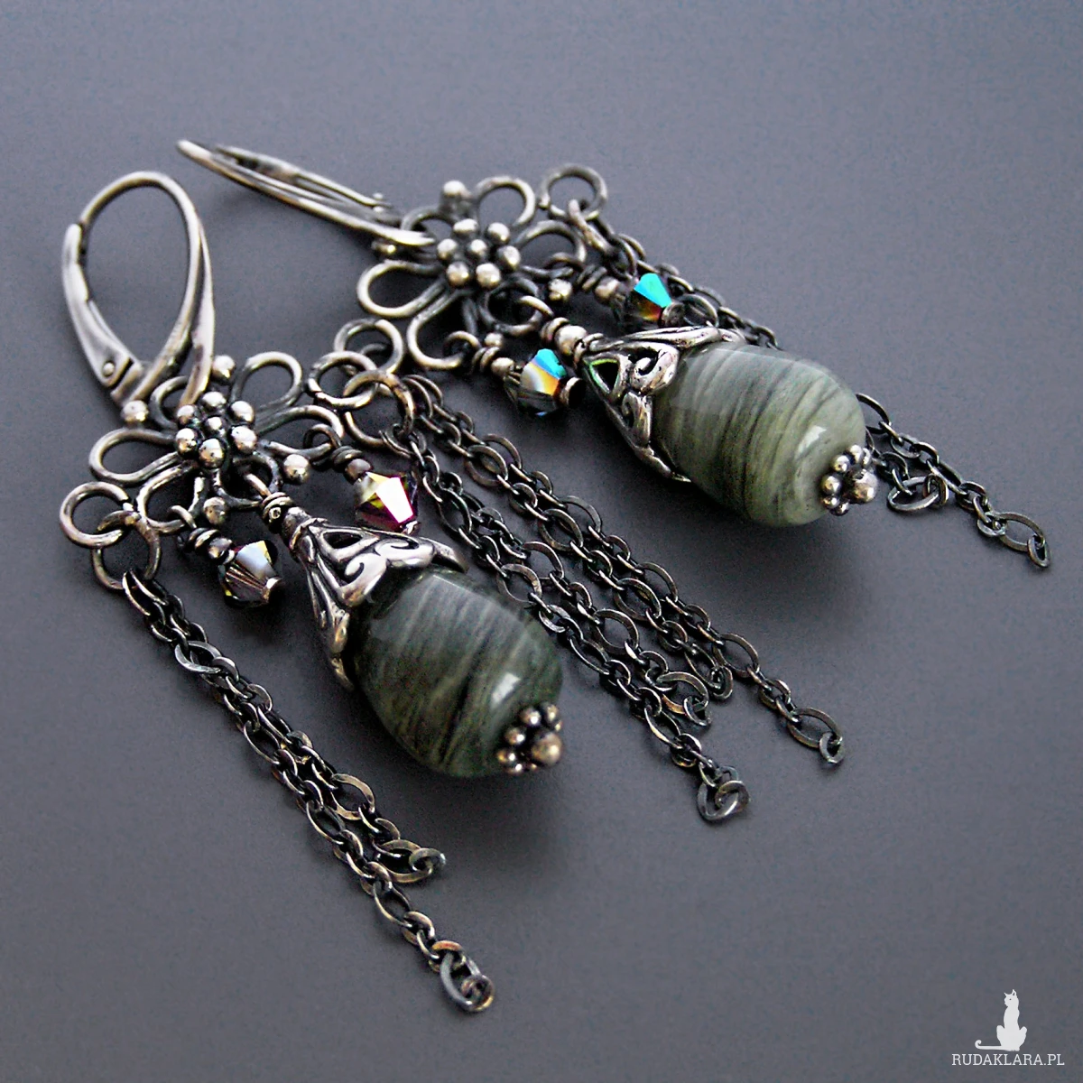 Kolczyki Scarlett, krople jaspisu, kryształki, srebro 925, kolekcja Przeminęło z Wiatrem