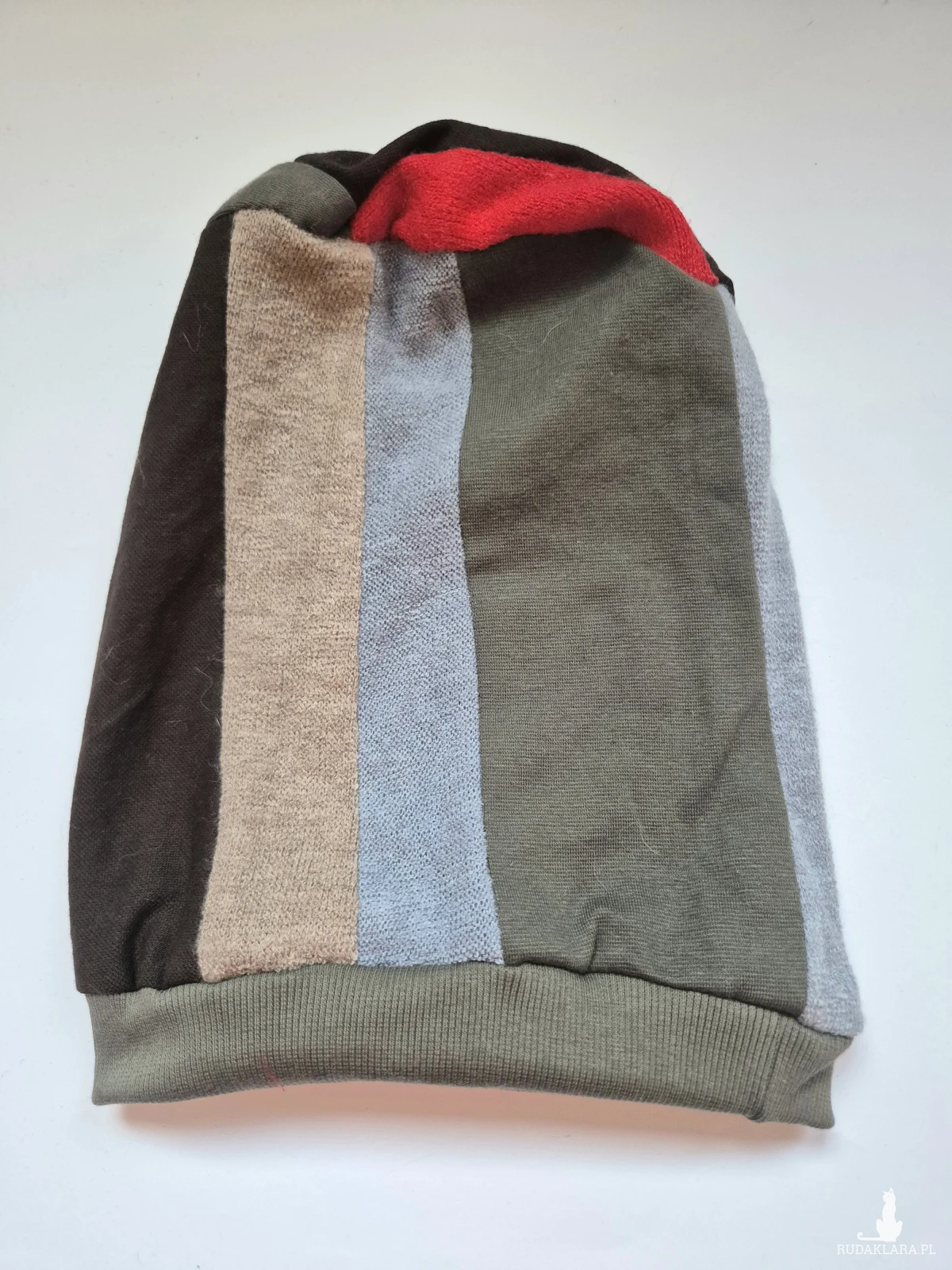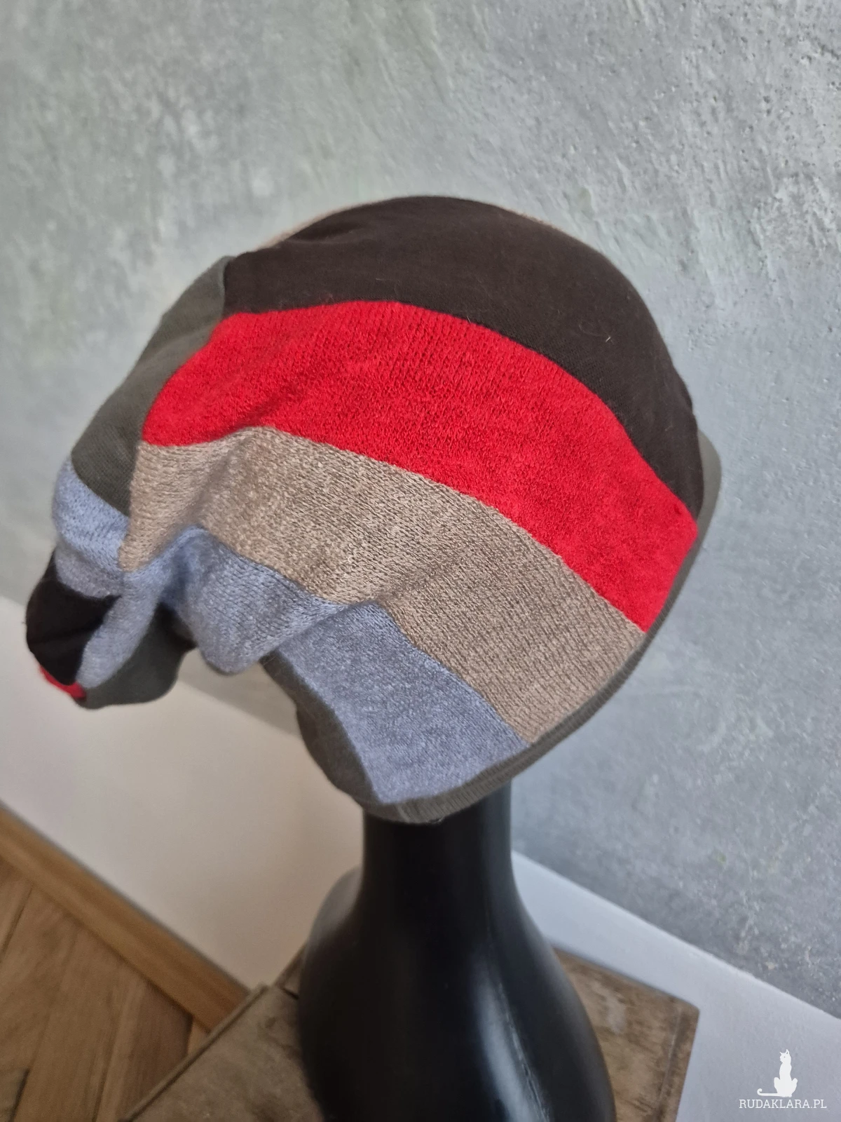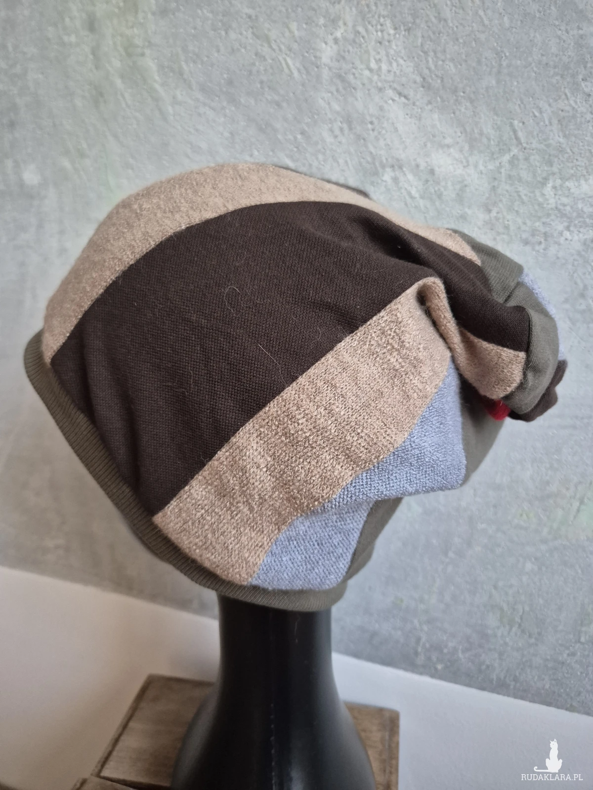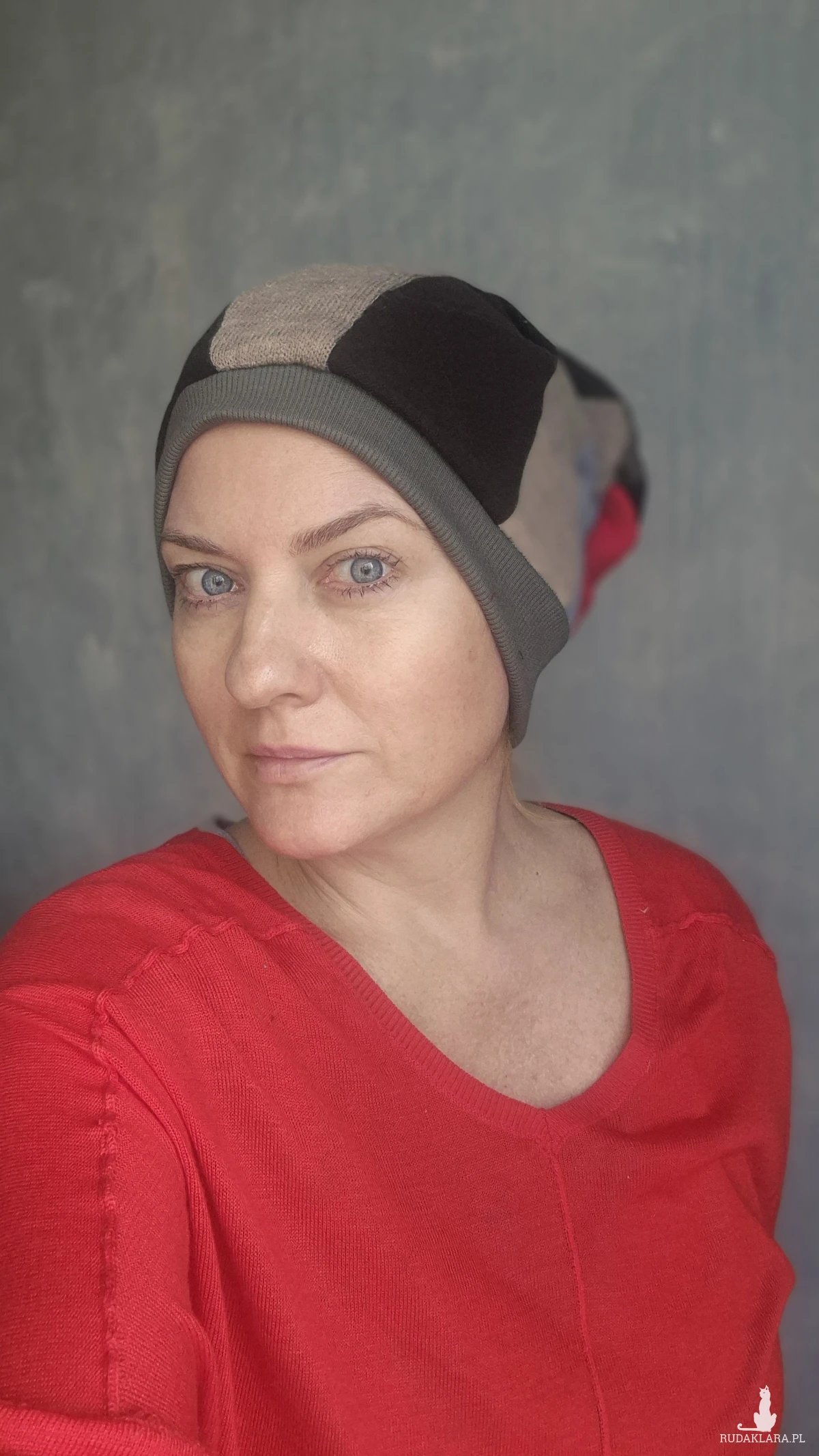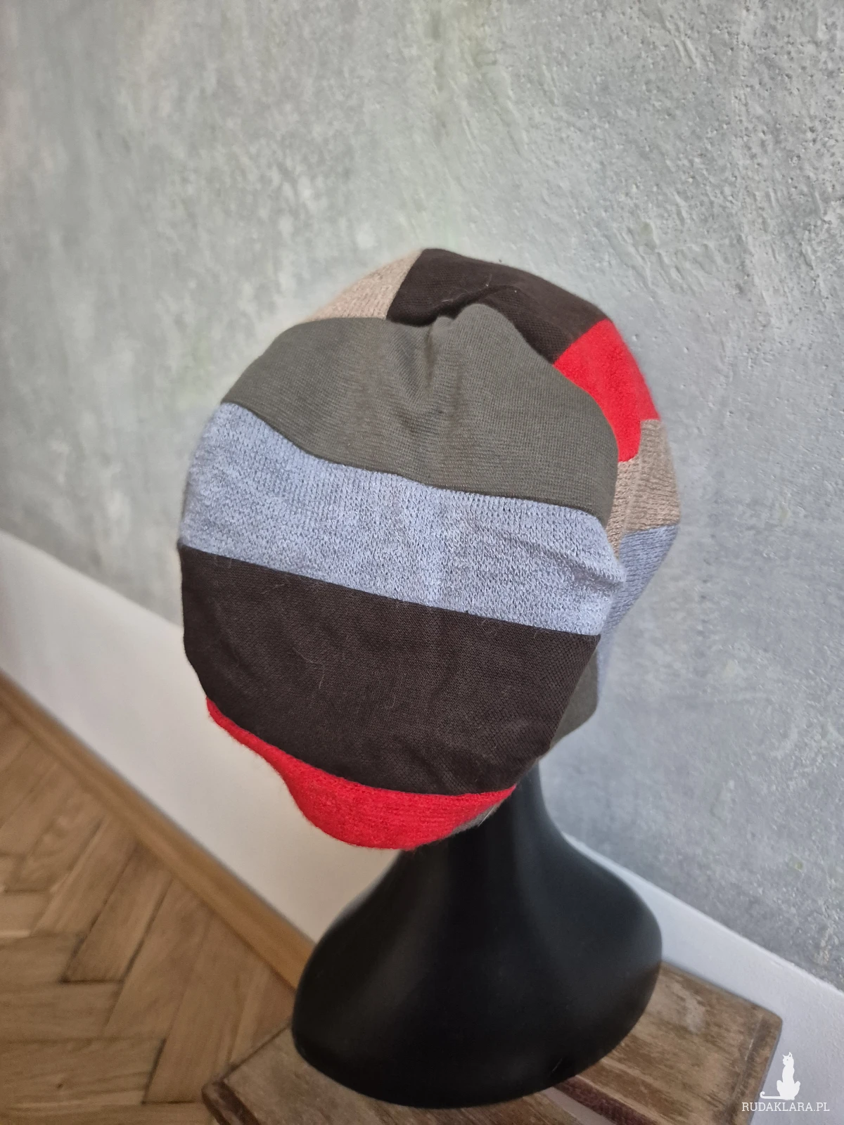 Czapka damska Smerfetka patchworkowa, na podszewce dobra na codzienne noszenie, wykonana w pojedynczym egzemplarzu rękodzieło polecam boks 44
