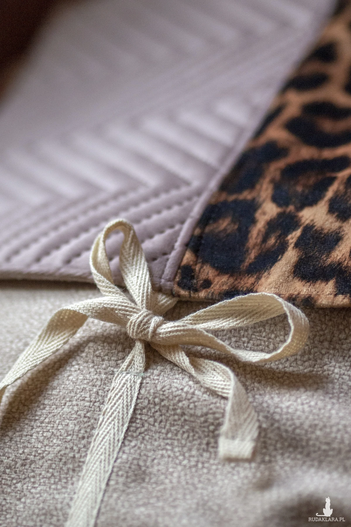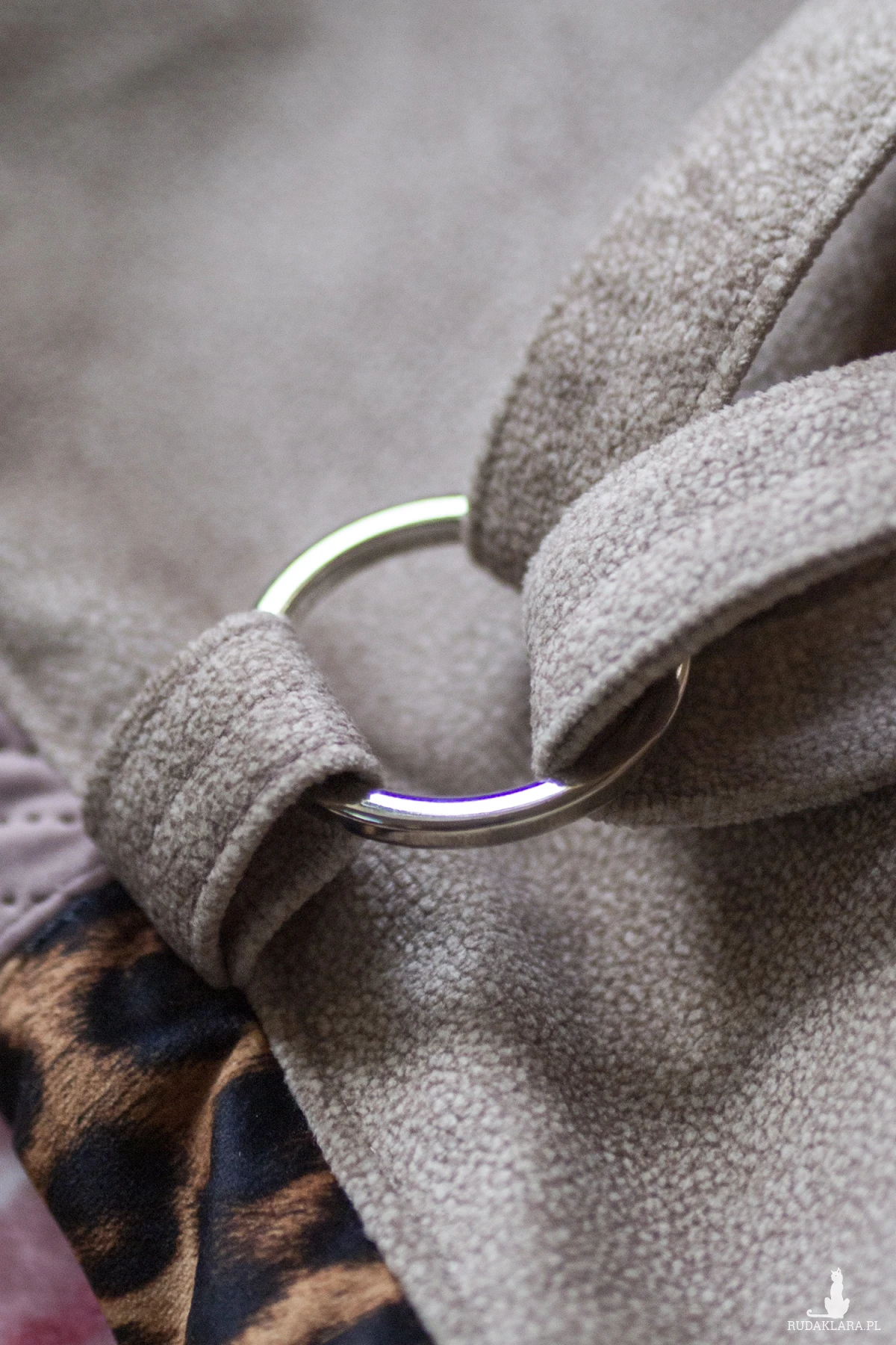 Szara, bawełniana podszewka w delikatne wzory. Regulowane paski mocowane w oryginalny sposób - na metalowym kole.