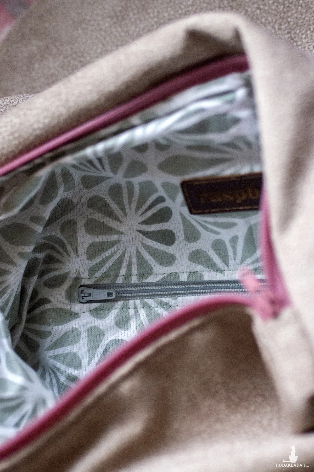 Plecak zapinany jest na suwak, w środku posiada zapinaną kieszonkę.