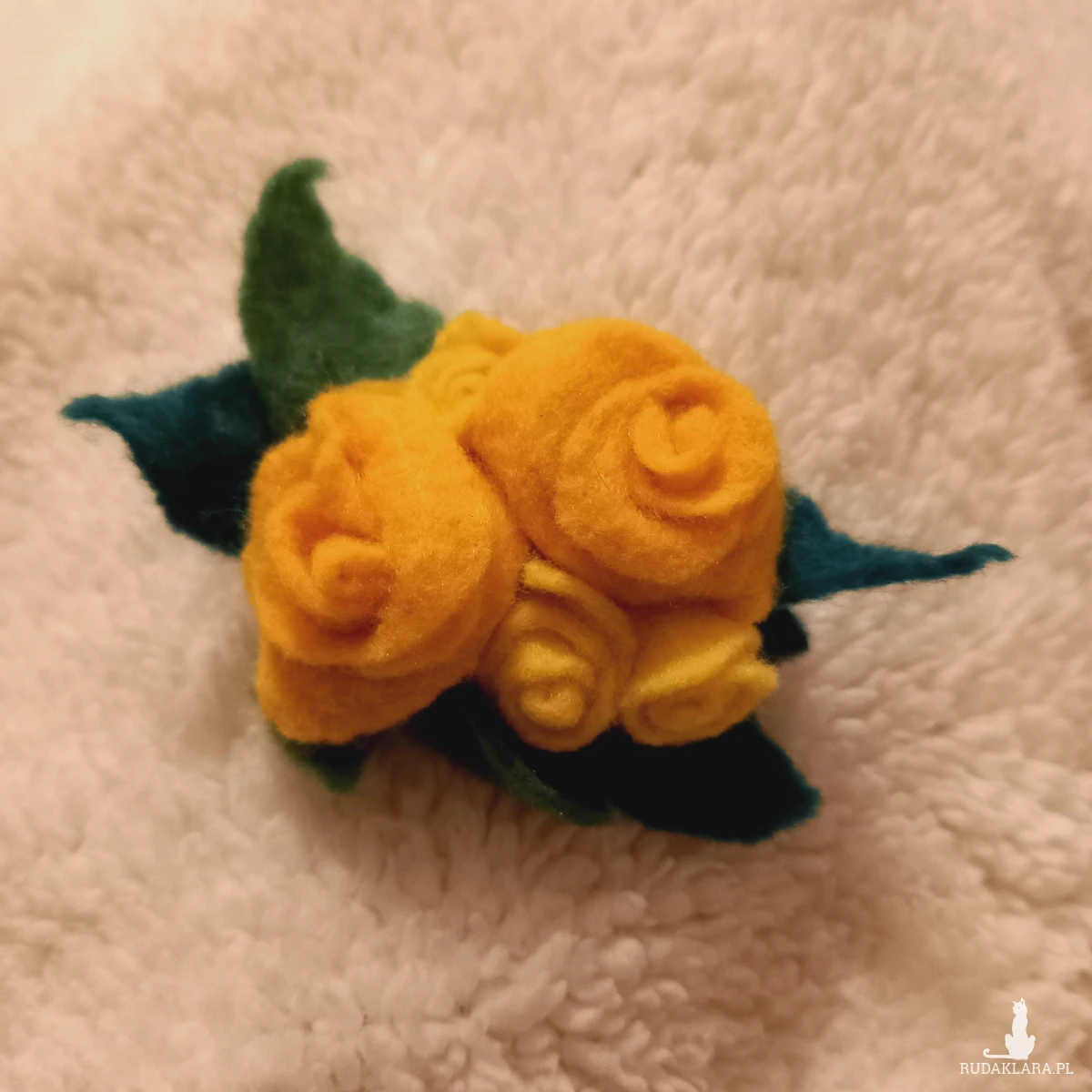 Bukiecik róż z filcu w kolorze żółtym.
