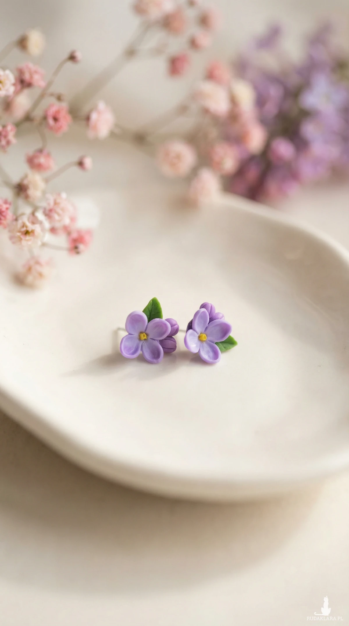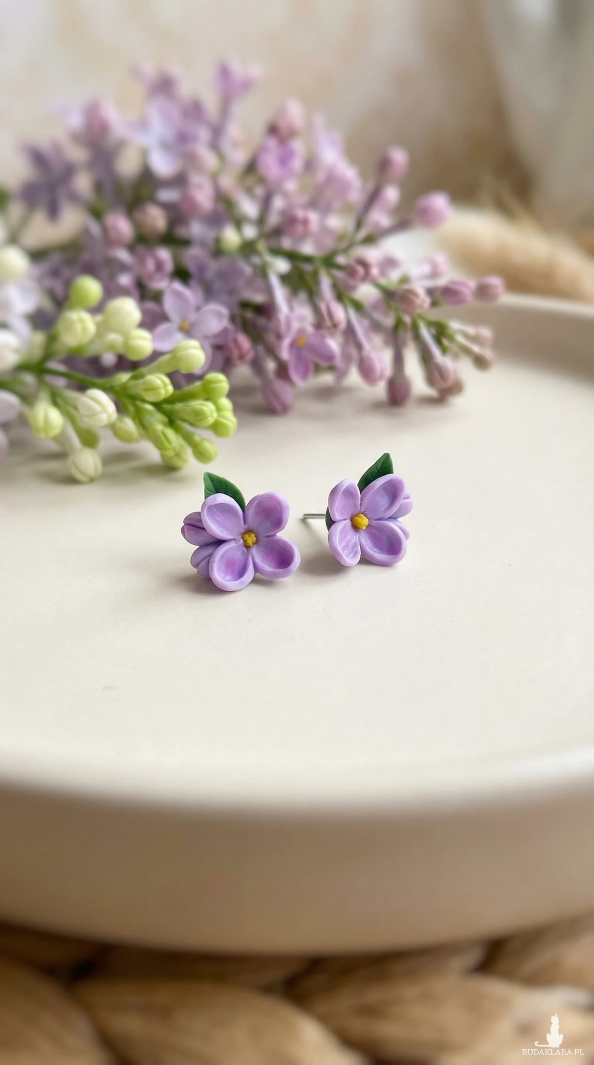 Piękne, wiosenne kolczyki z kwiatami bzu.