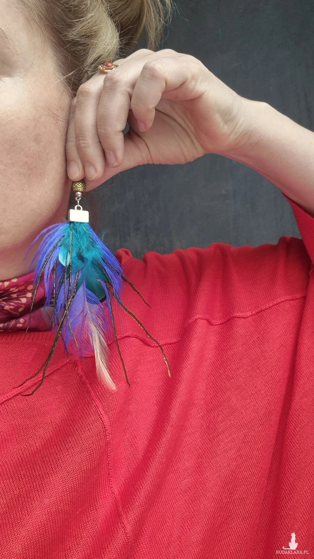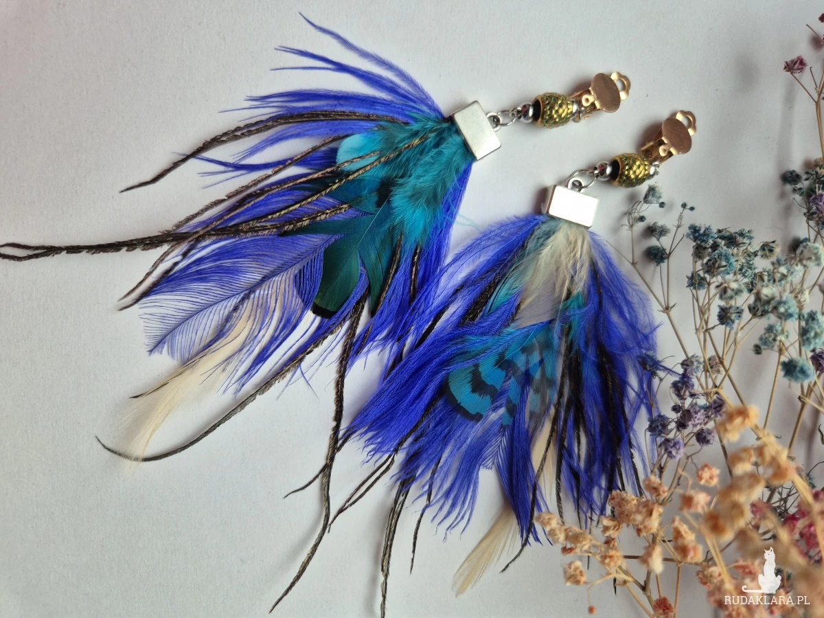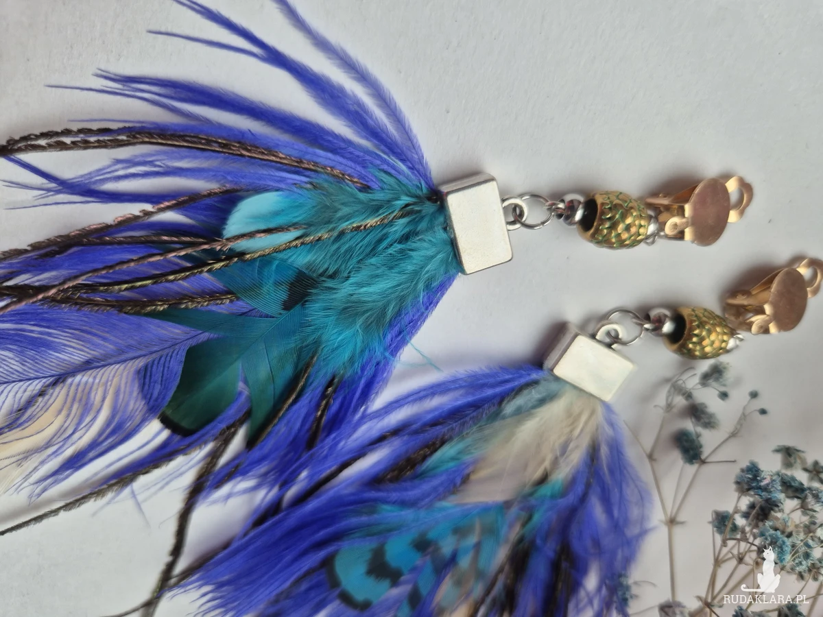Klipsy leciutkie turkusowe pióra mogą być zamienione na kolczyki polecam wykonane w pojedynczym egzemplarzu