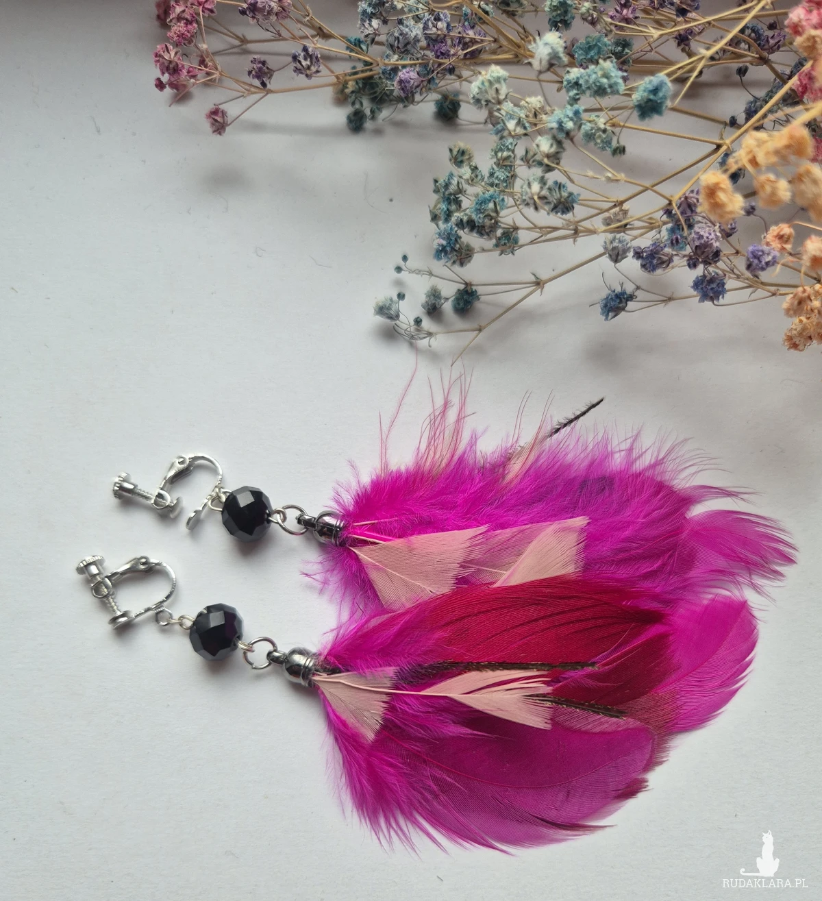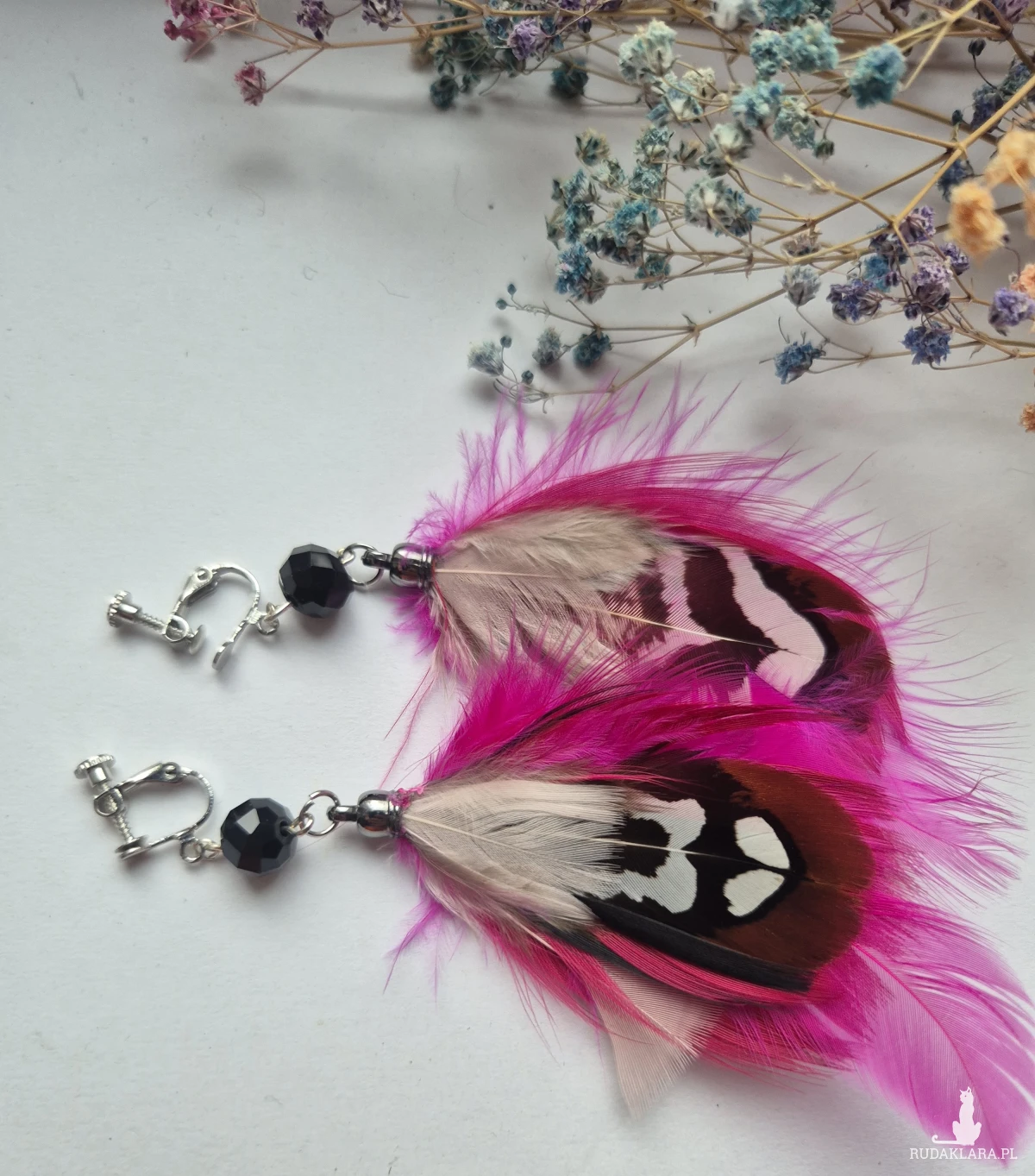 Klipsy różowe pióra