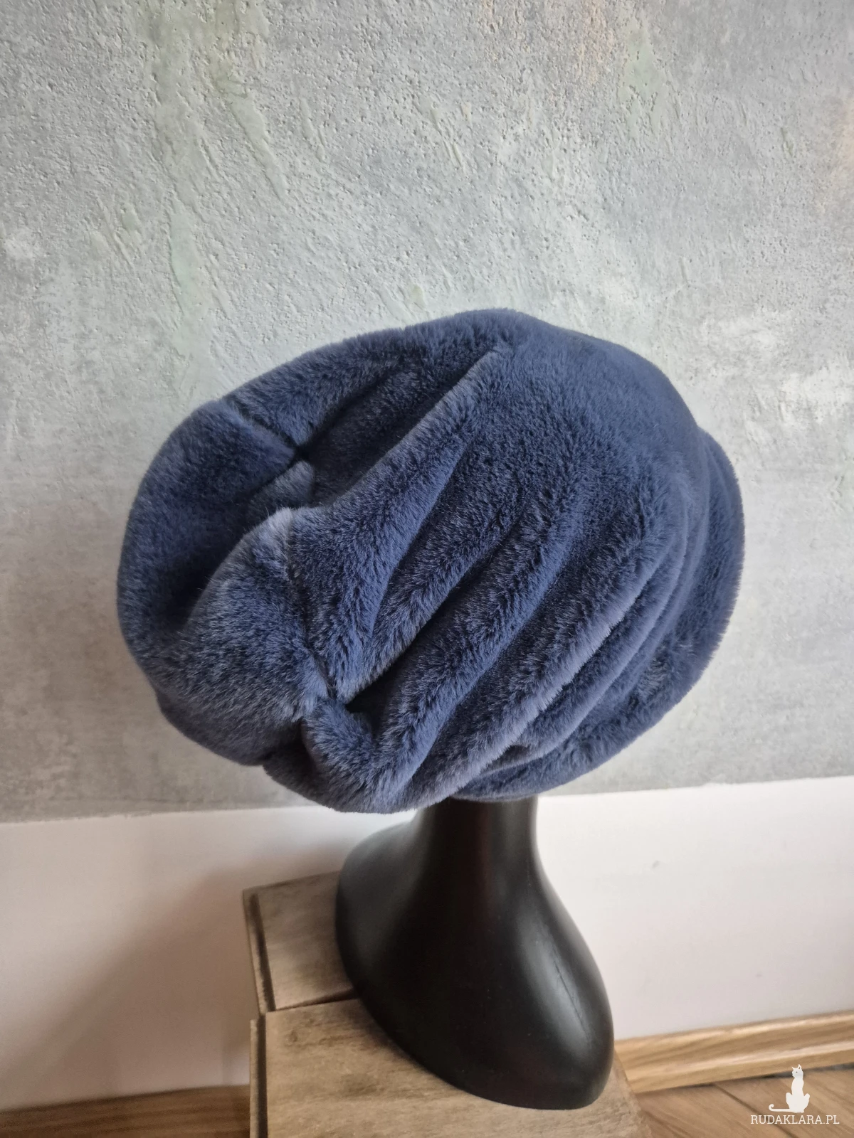 Czapka futrzana niebieska ociepła na podszewce, prezentuje się niezwykle oryginalnie nie dla szarej myszki dla odważnych pewnych siebie kobitek polecam pojedyncza sztuka box a1