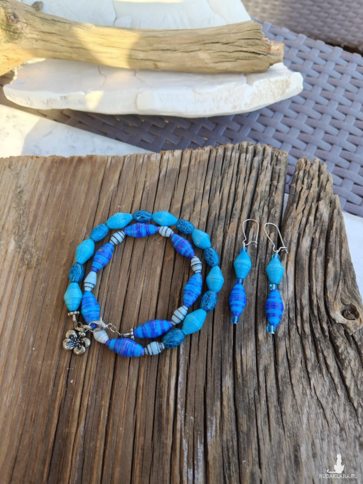 Komplet "Oceaniczna Harmonia" to wyjątkowe połączenie głębokich odcieni błękitu i turkusu, inspirowane kolorem morza i letnią swobodą. Ręcznie wykonane koraliki o różnorodnych fakturach tworzą dynamiczną, a zarazem elegancką kompozycję. Bransoletka z ozdobnym zapięciem oraz lekkie, wiszące kolczyki pięknie dopełnią zarówno codzienne stylizacje, jak i letnie, wakacyjne kreacje. To biżuteria, która przyciąga wzrok i podkreśla indywidualny charakter.