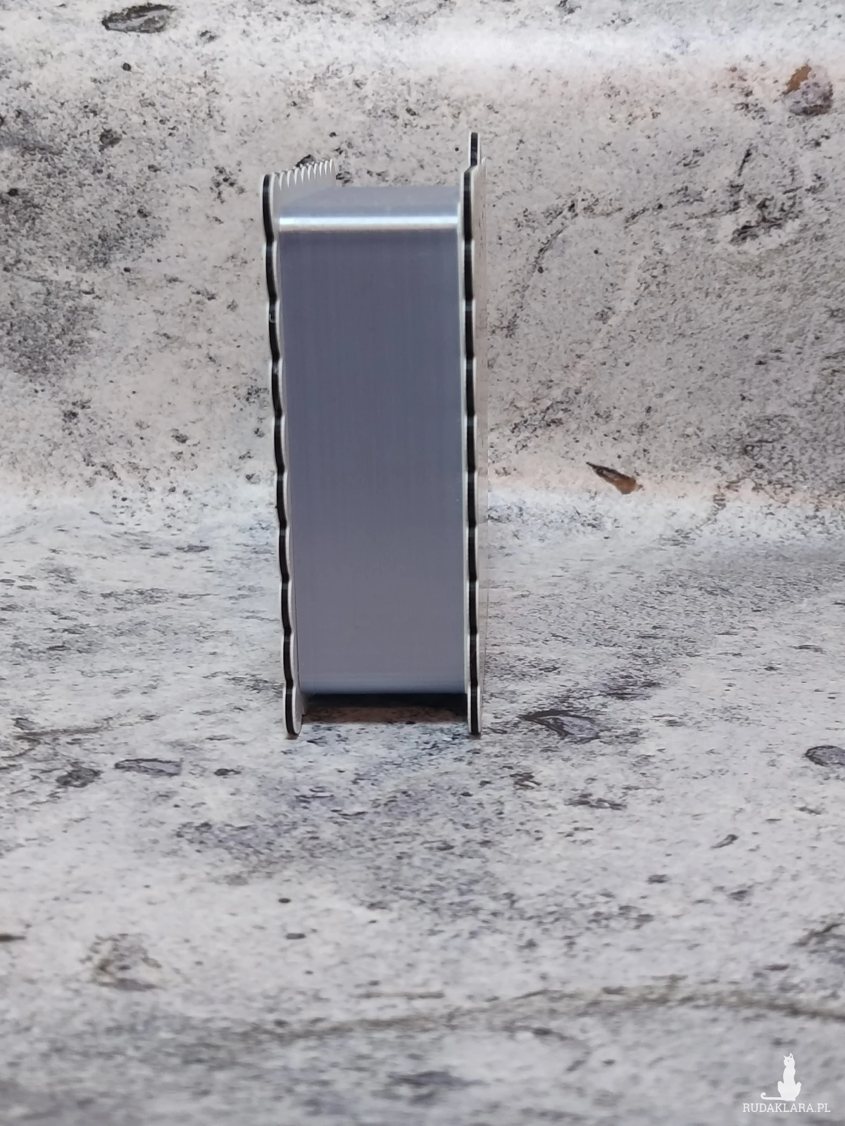 Opakowanie: pudełko drukowane w technologii 3D z PLA, wyposażone w magnesy trwałe mocowane klejem.