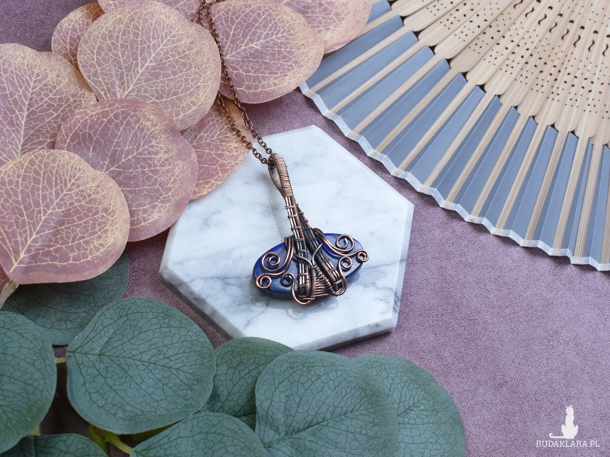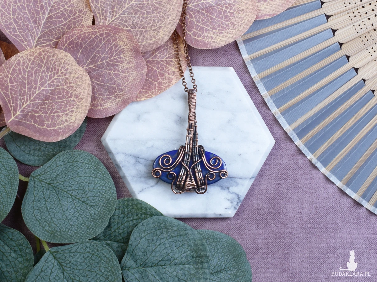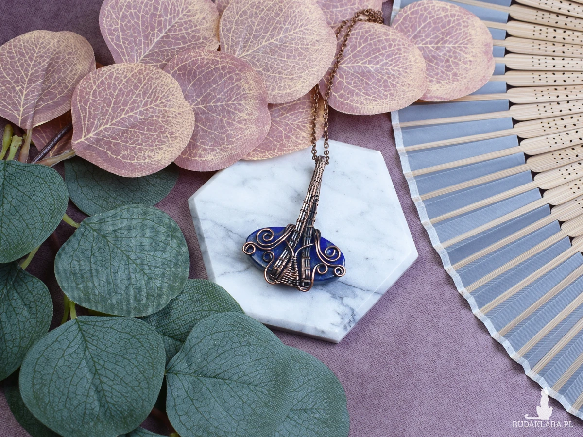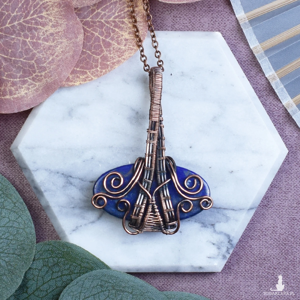 Miedziany wisiorek wire wrapping z lapisem lazuli #524