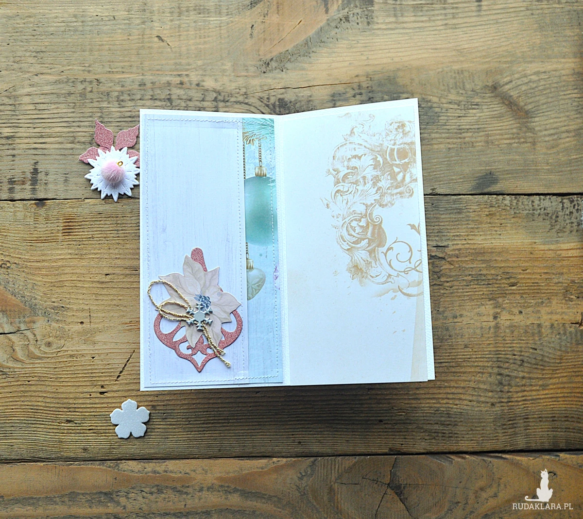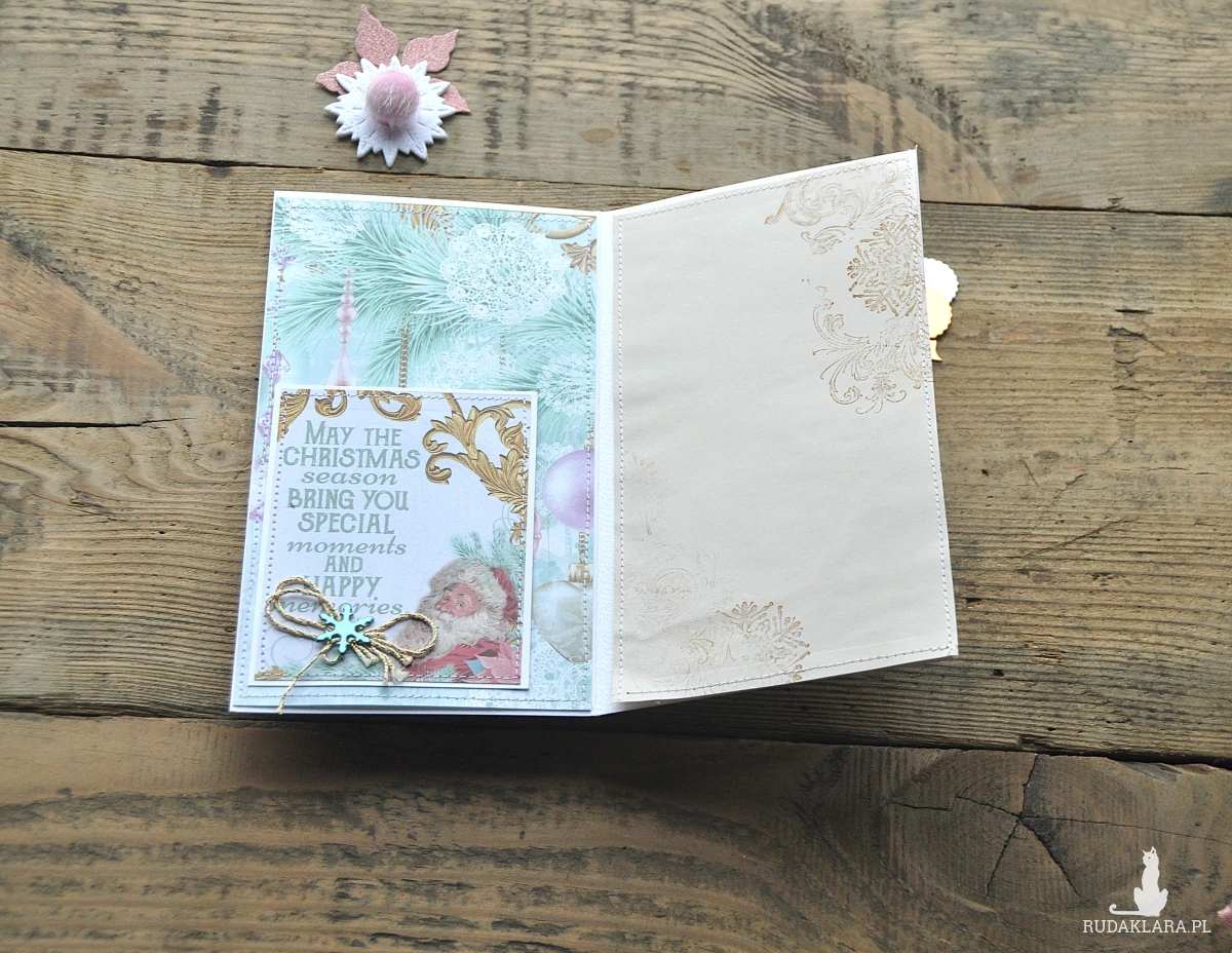 Zestaw kartek świątecznych, wnętrze również zdobione, można ozdobić prezentem pieniężnym (certyfikat, bilety), na lewej stronie znajduje się kieszonka. Możno kupić jedną pocztówkę na raz, jako zestaw lub utworzyć zestaw z innych moich pocztówek „w magazynie”.