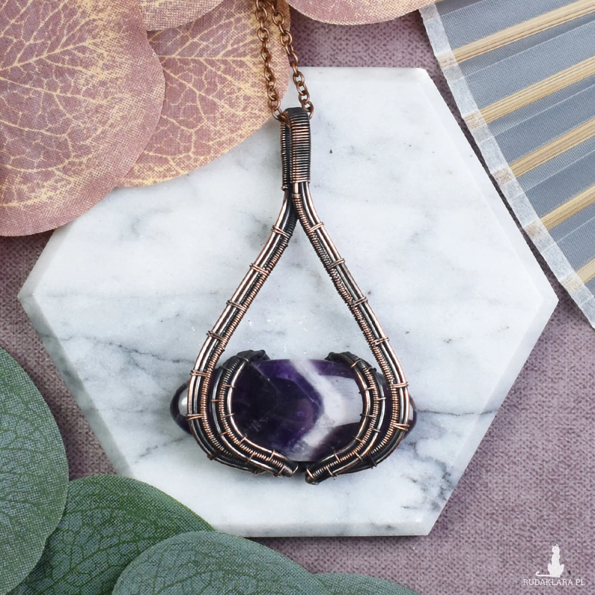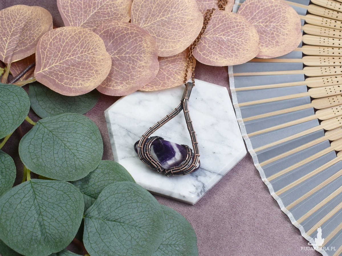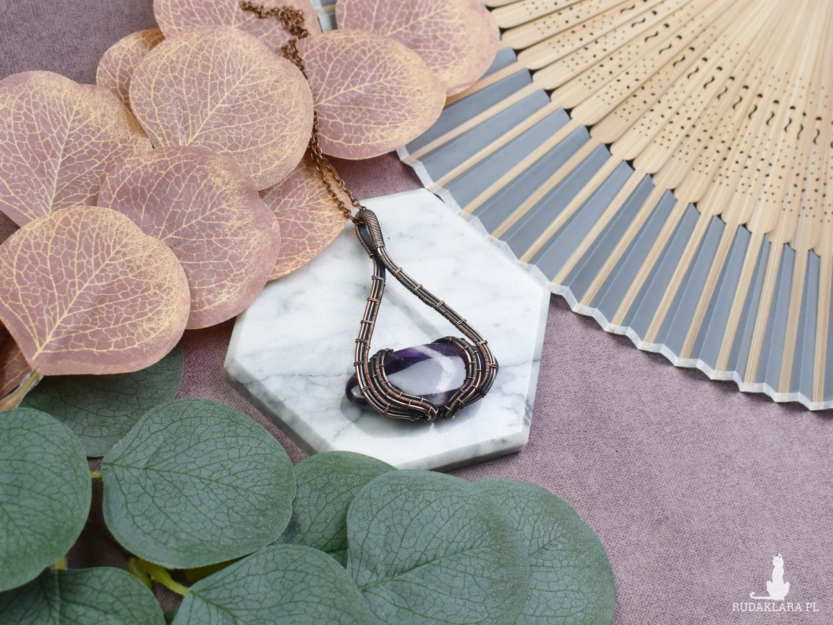 Wisiorek wykonany w technice wire wrapping z ametystem to nie tylko piękna ozdoba, ale także amulet o wyjątkowych właściwościach. Ametyst, znany jako kamień spokoju, pomaga w zrelaksowaniu umysłu i łagodzi napięcia. Jego fioletowy kolor symbolizuje harmonię i duchową równowagę. Dodatkowo, ametyst jest uznawany za kamień ochronny przed negatywnymi energiami, wzmacniający intuicję i umożliwiający głębszą medytację. Wisiorek ten nie tylko podkreśla indywidualny styl, ale również oferuje korzyści dla dobra psychicznego i duchowego noszącego go.