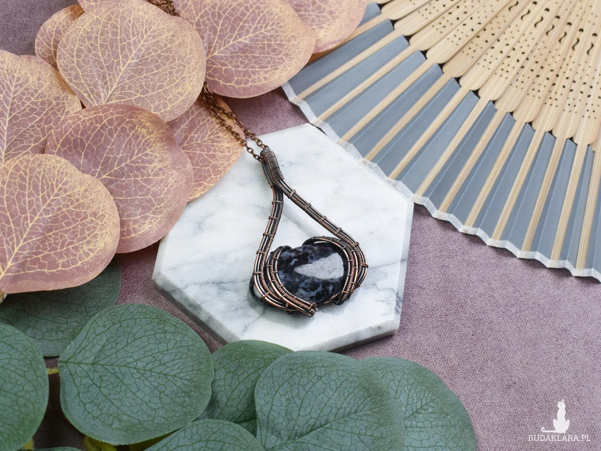 Miedziany wisiorek wykonany techniką wire wrapping z wyjątkowym kamieniem - jaspisem garboo. To niezwykłe połączenie miedzi i naturalnego kamienia, które tworzy prosty, a jednocześnie wyrazisty dodatek. Delikatne zawinięcia drutu podkreślają unikalne cechy kamienia, nadając mu oryginalny charakter. Jaspis garboo, znany również jako jaspis garbusowy, to kamień o pięknych wzorach i ciepłych barwach, co sprawia, że każdy wisiorek jest niepowtarzalny. To subtelne, ręcznie wykonane dzieło, które wnosi do stylizacji naturalny akcent, emanujący siłą i urodą kamienia. Idealny wybór dla miłośników prostoty i autentyczności w biżuterii.